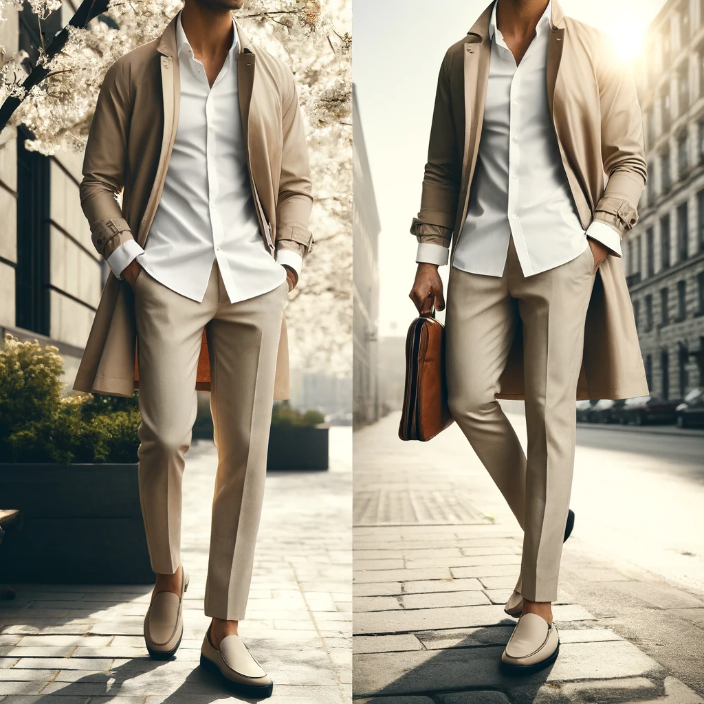 | 크림 베이지 + 브라운 | 부드럽고 세련된 무드 | 베이지 트렌치코트 + 브라운 부츠 |