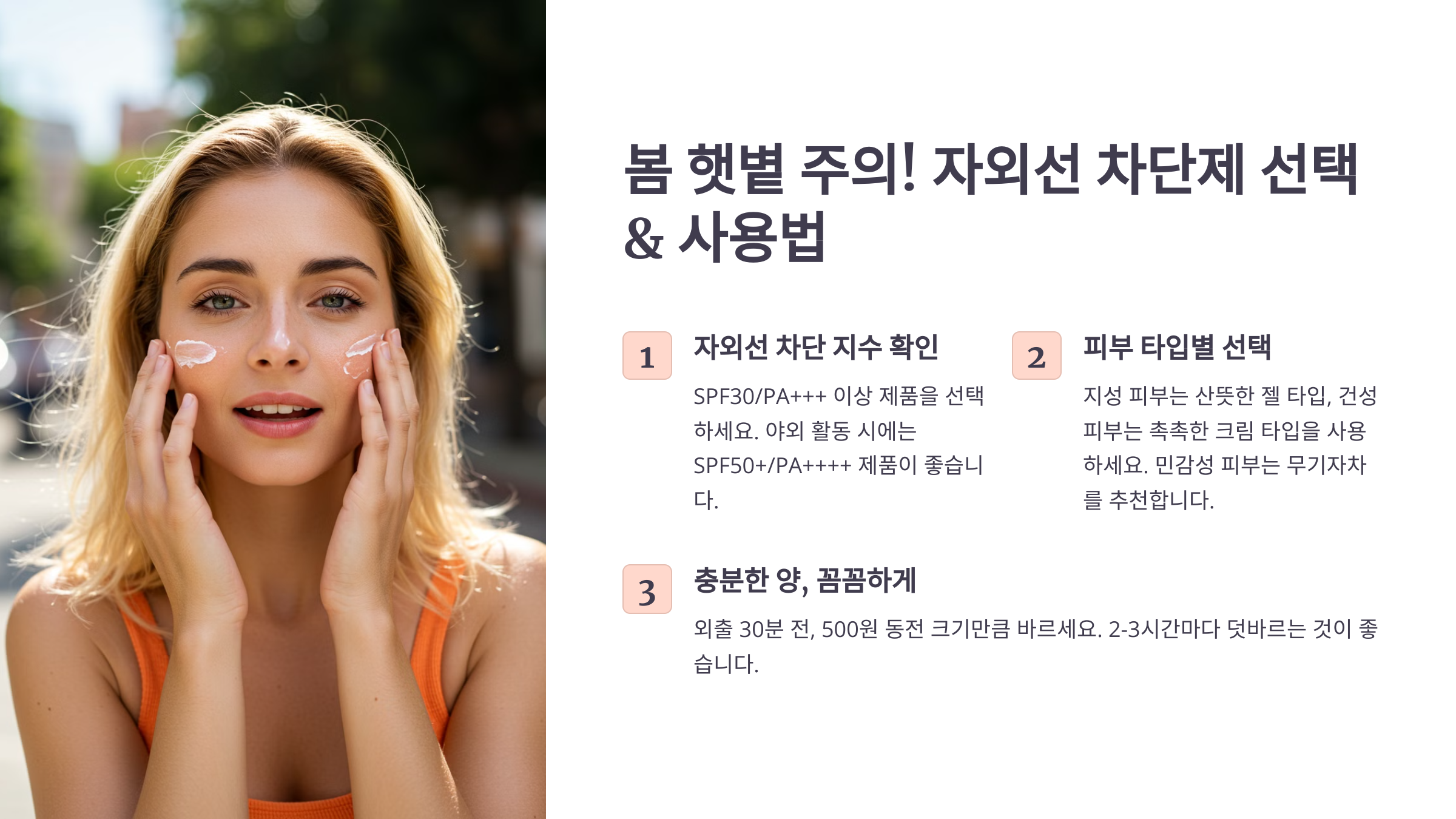 💡 아래에서 자외선 차단제 선택 & 바르는 법을 확인하고, 피부를 안전하게 보호하세요! ✅