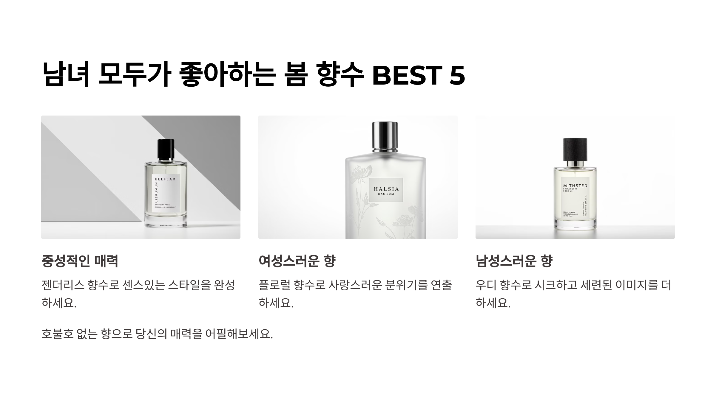 💎 "남녀 모두 좋아하는 향수가 있을까?" 다음 섹션에서 호불호 없는 베스트 봄 향수를 확인해 보세요! ✅