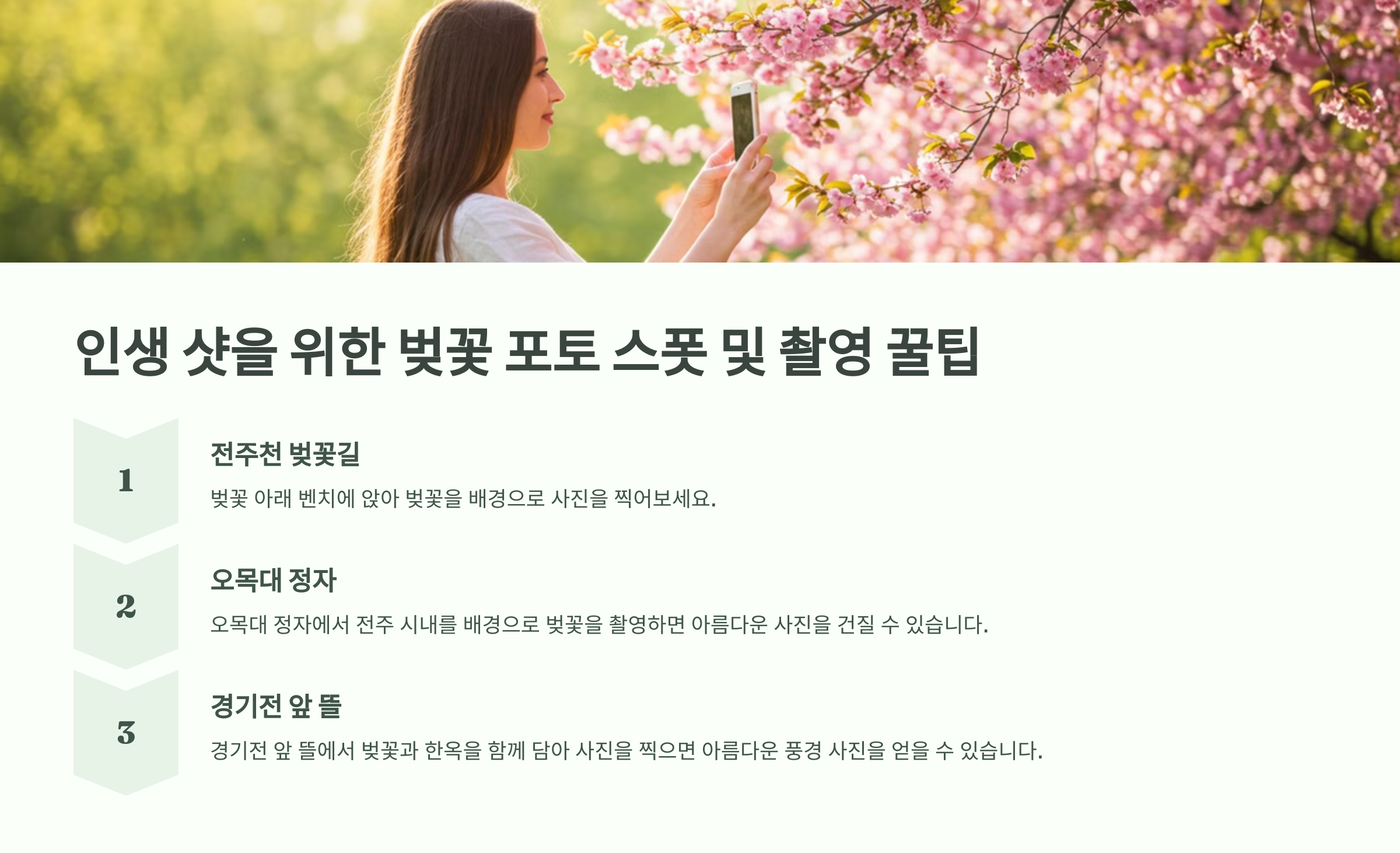 🌸 이제 전주 한옥마을 벚꽃 여행 준비 완료! 한옥과 벚꽃이 어우러진 전주의 봄을 놓치지 마세요. ✅