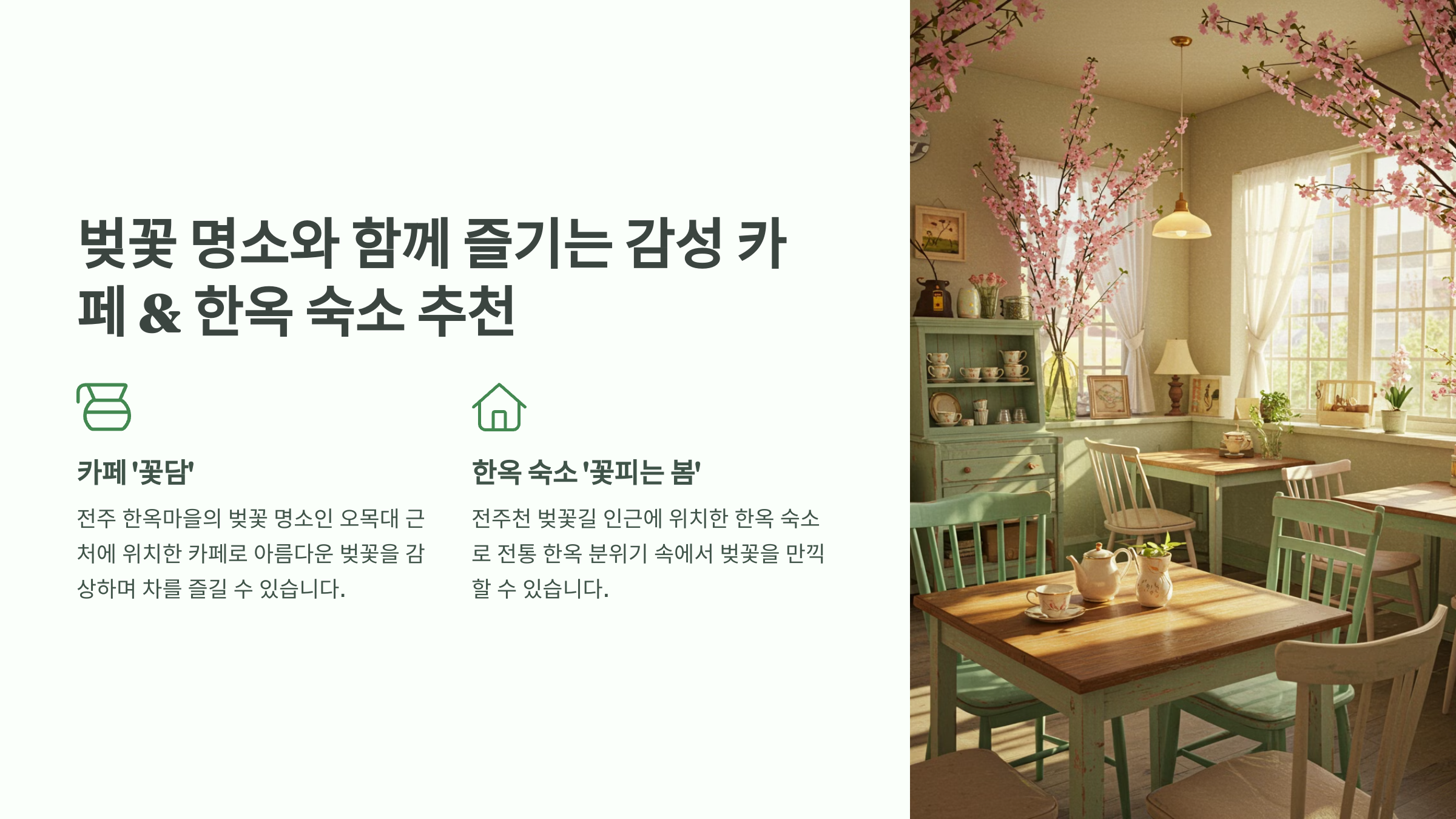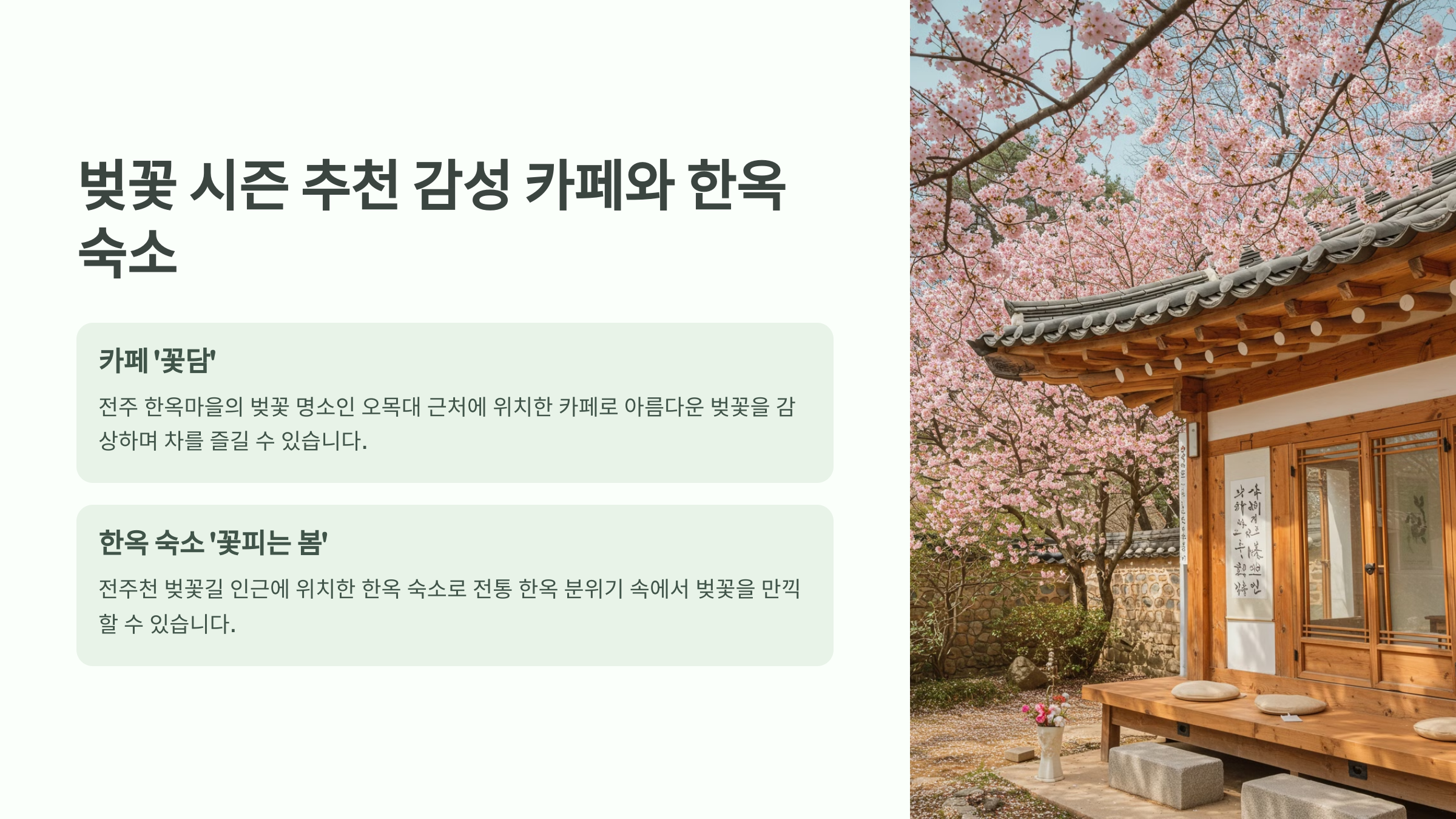 전통적인 분위기와 어우러진 감성 카페 & 숙소에서 완벽한 전주 벚꽃 여행을 즐겨보세요! ✅