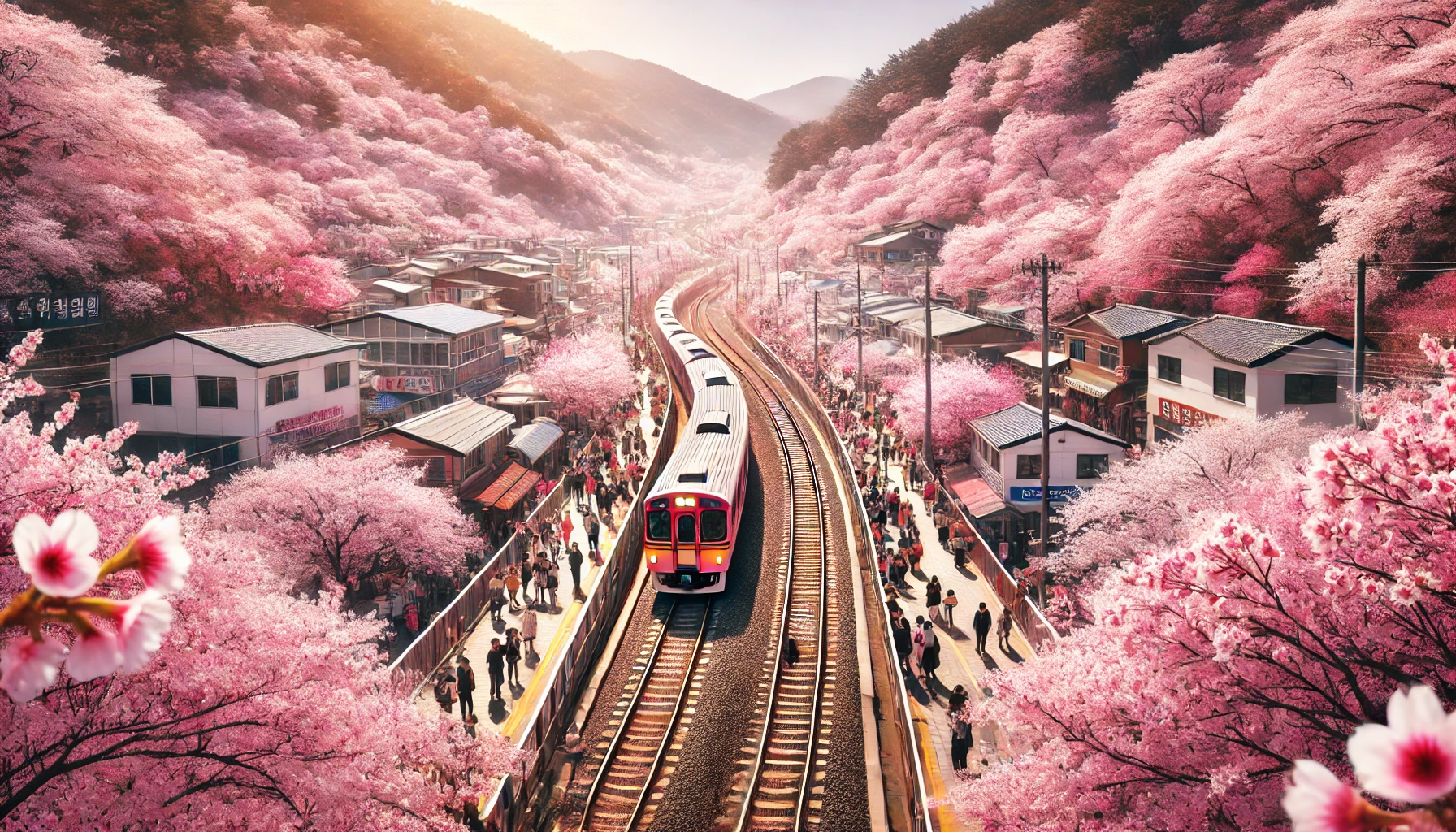 철길을 따라 늘어선 벚꽃 터널이 환상적이에요. 기차와 함께 찍는 사진이 가장 인기 있는 포인트!