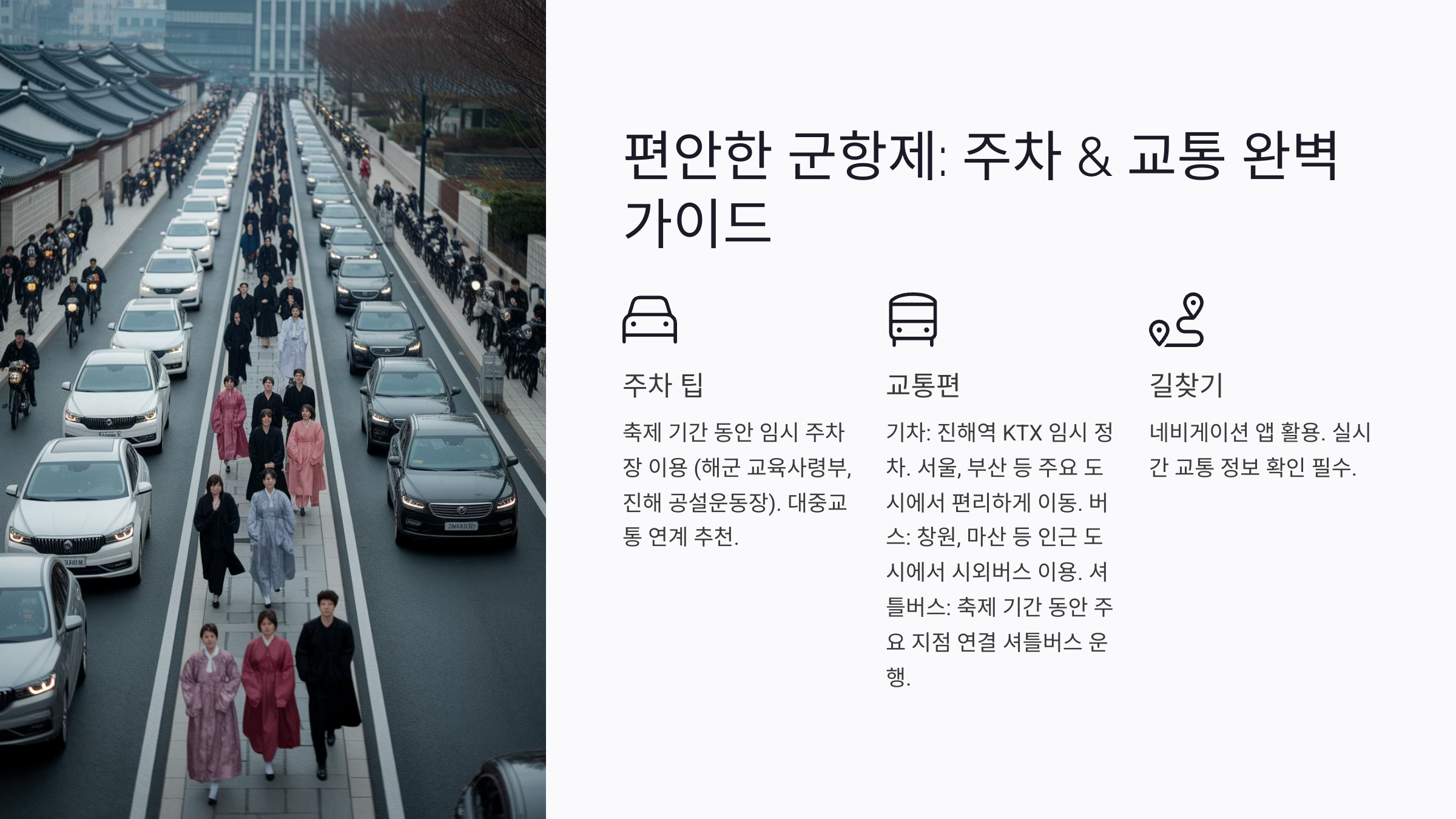 📢 이제 진해 군항제를 편하게 즐기기 위한 교통 & 주차 꿀팁을 알아볼까요?