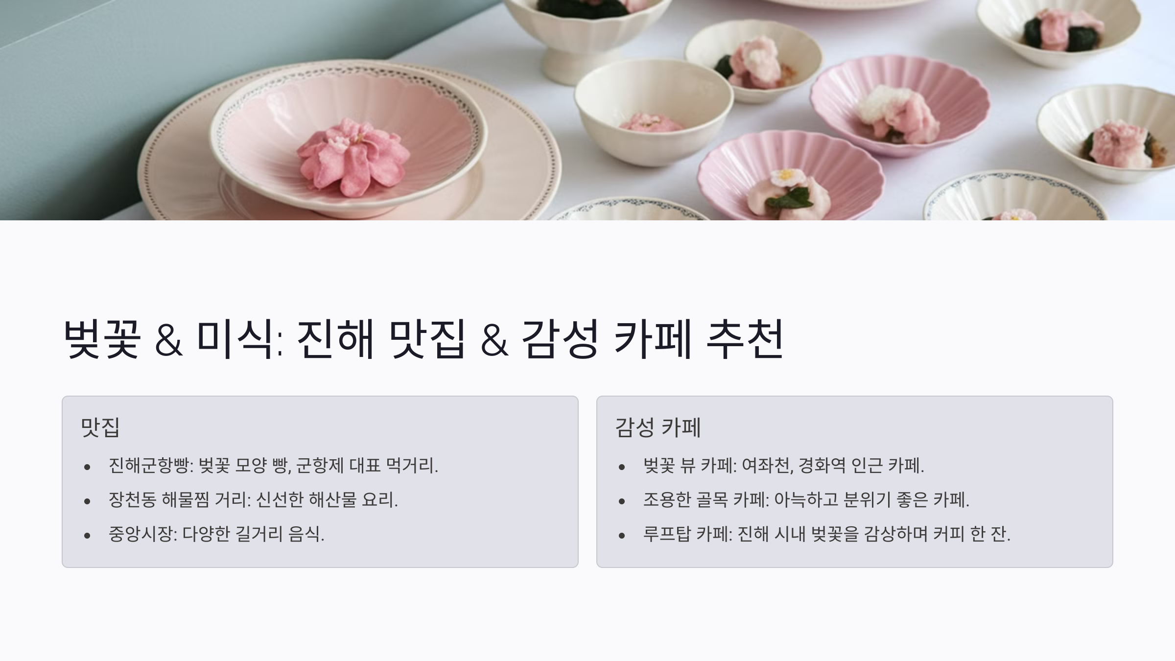📢 이제 군항제에서 벚꽃과 함께 즐길 수 있는 맛집 & 카페를 소개할게요!