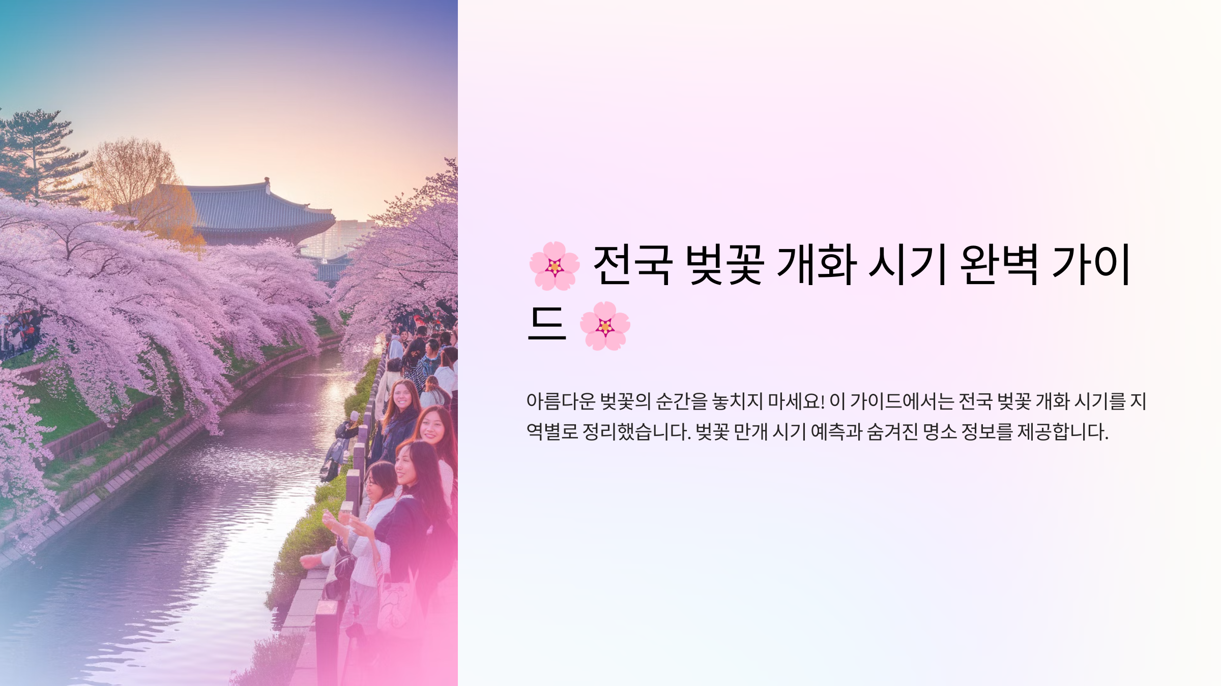 🌸 올해 벚꽃 시즌을 제대로 즐기려면, 개화 시기를 미리 체크하고 일정을 조정하는 것이 중요해요!