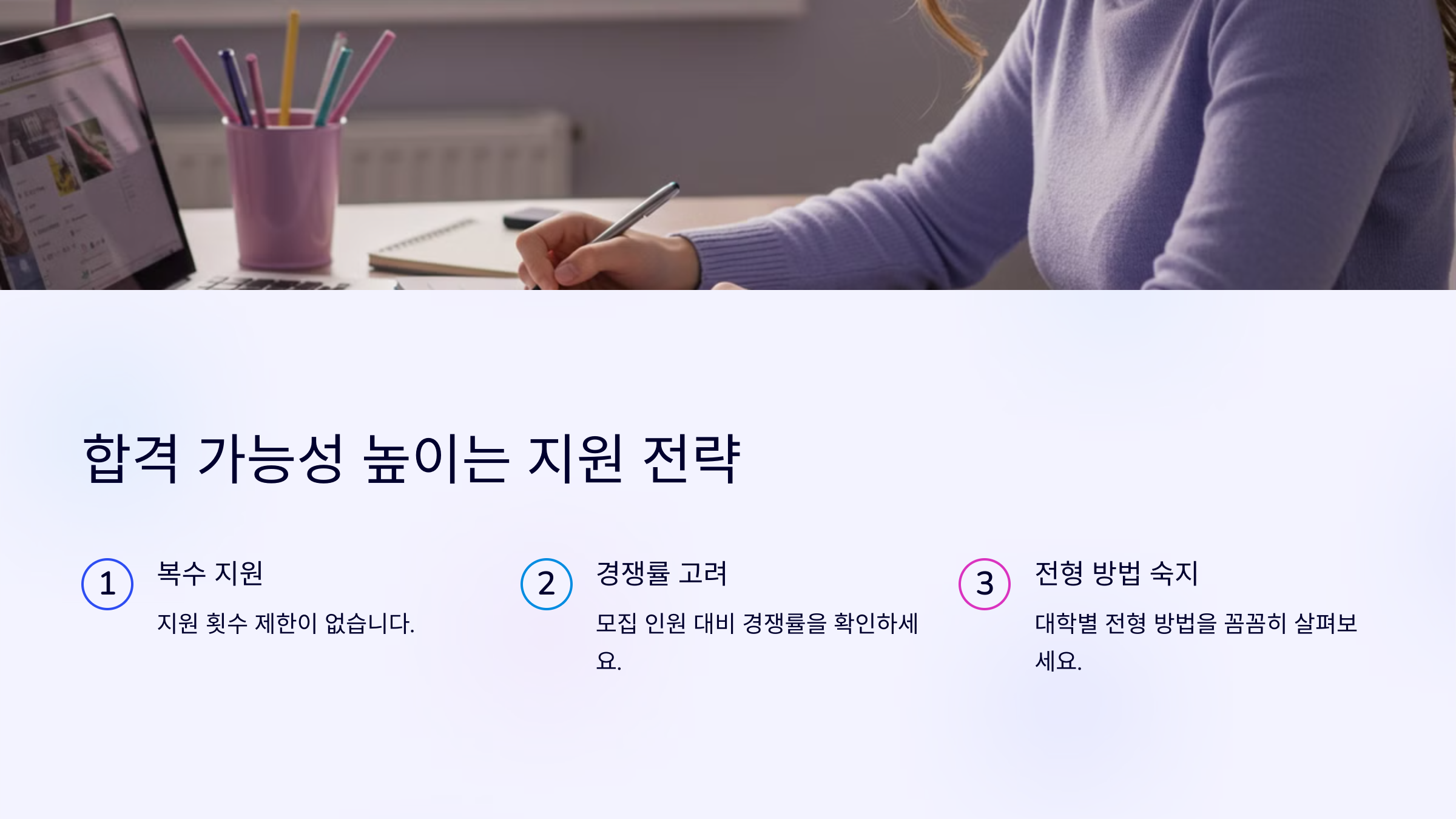 | 📝 복수 지원 전략 | 지원 가능한 대학이 많다면 중복 지원 |