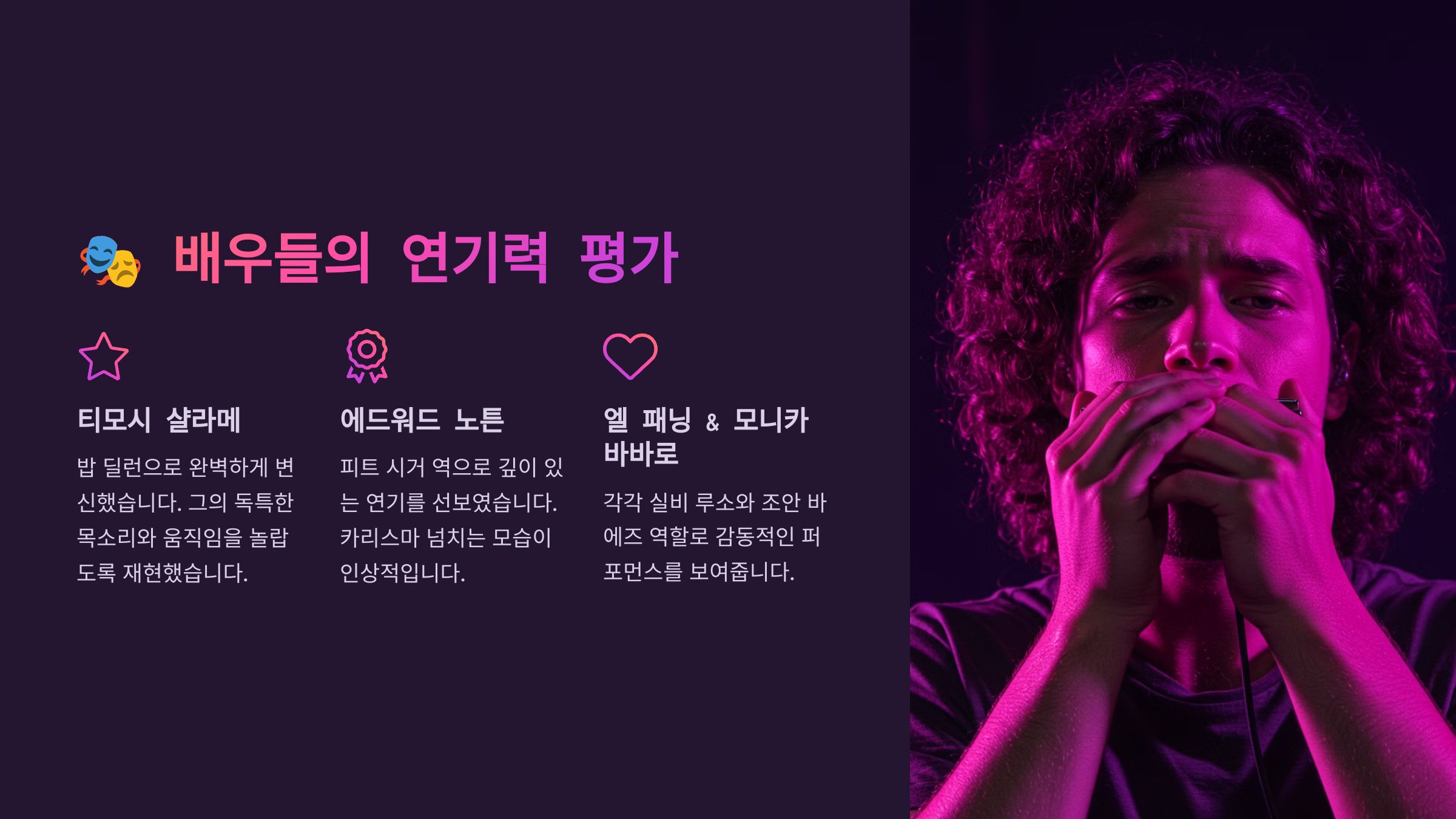 이제 배우들의 연기력이 이 영화를 얼마나 더 빛나게 만들었는지 살펴볼까요? 🎭