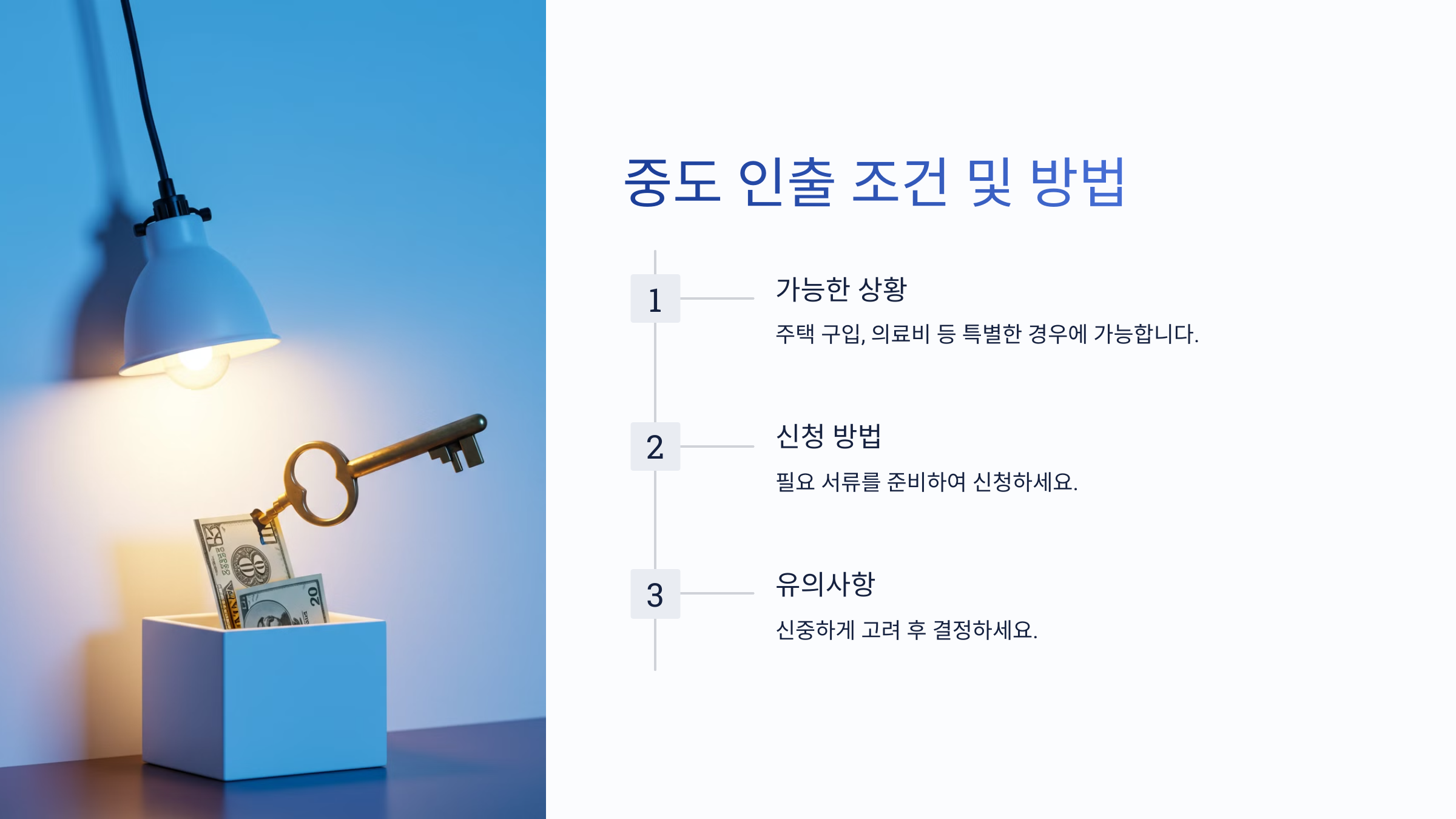 - 📅 중도인출 가능한 경우도 있음 (질병, 사고 등)