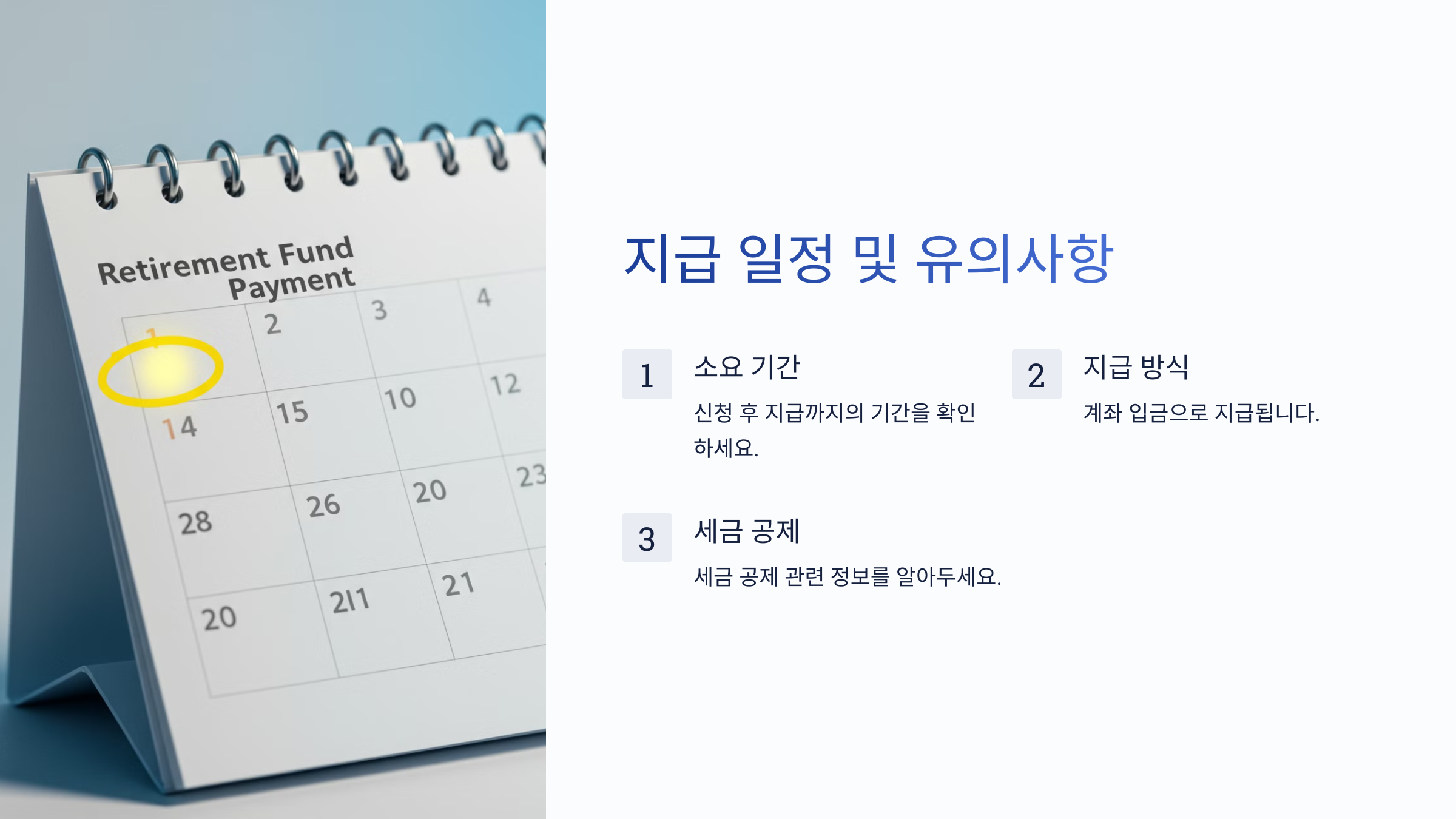 - 📅 퇴직 후 5년 이내에 신청해야 지급 가능