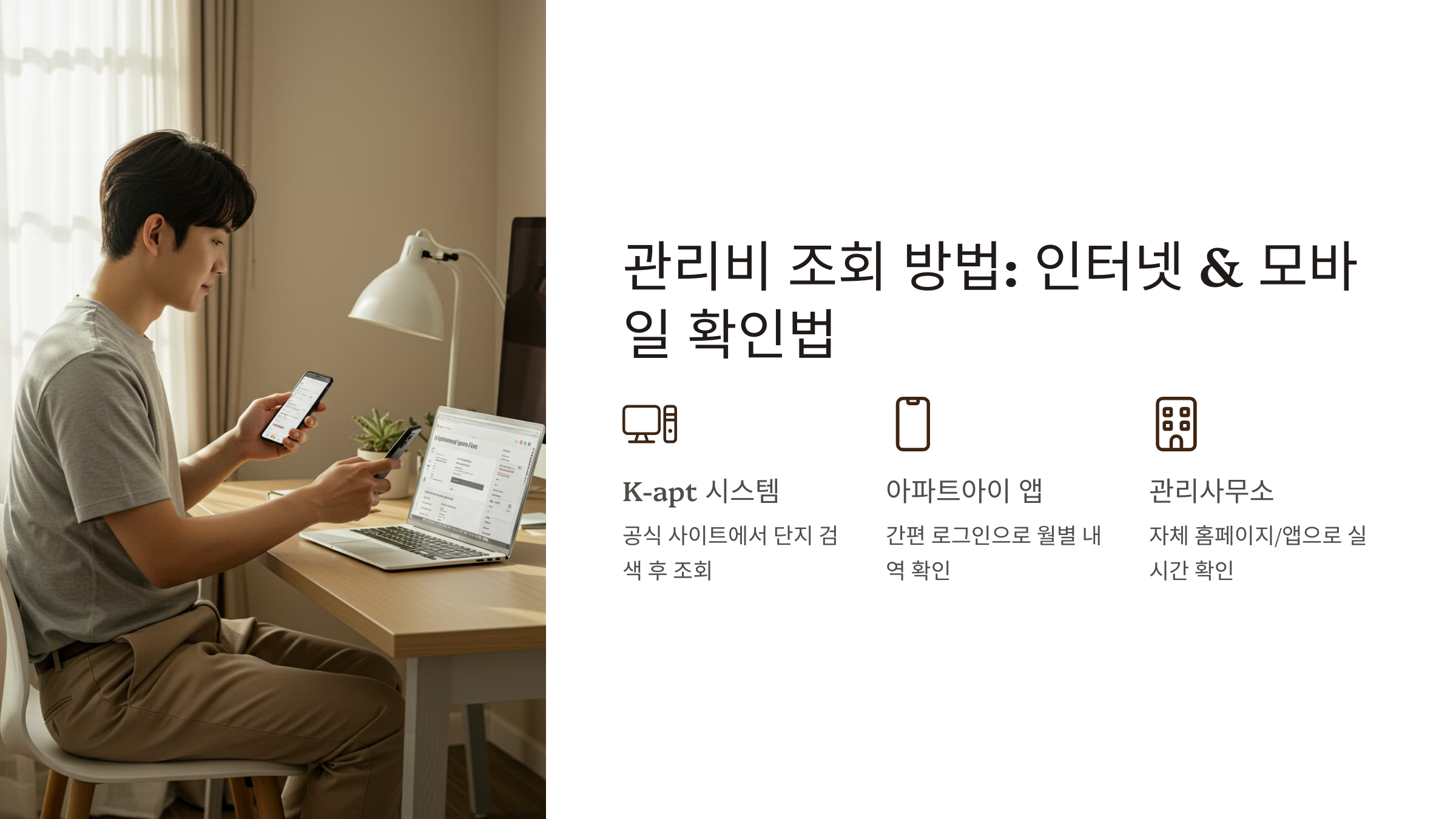 인터넷과 모바일 앱을 이용하면 언제 어디서든 간편하게 관리비를 확인할 수 있어요. 요즘은 자동이체 설정도 가능하니 납부까지 한 번에 해결할 수 있답니다! 📱💻