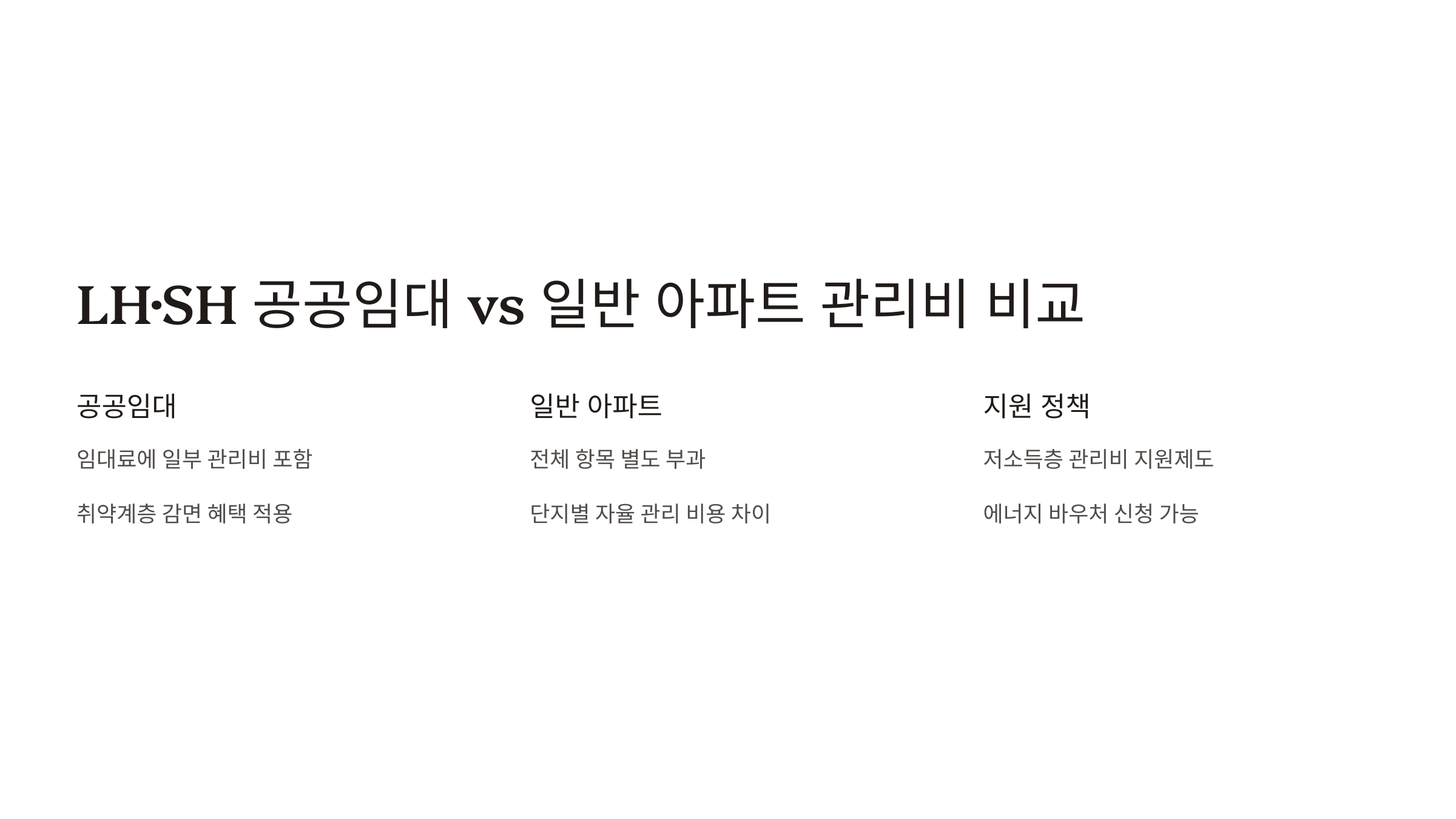 💡 "LH·SH 공공임대 아파트와 일반 아파트, 관리비 차이가 있을까요?"