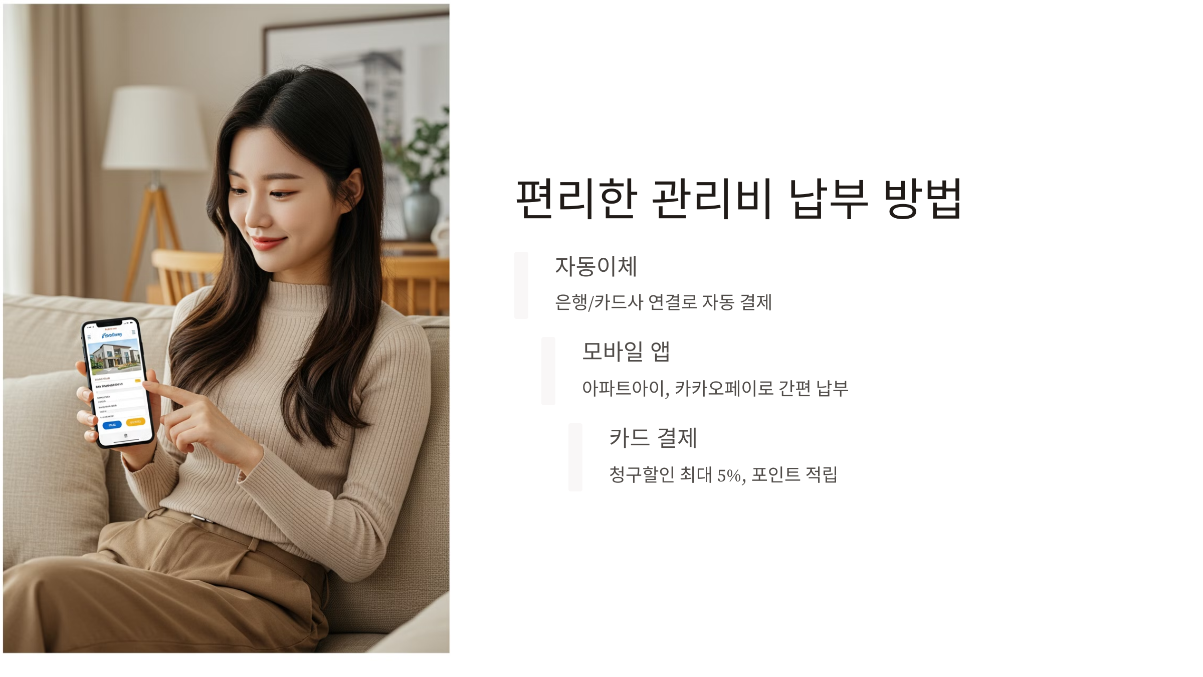 💡 "아파트 관리비, 매달 납부하는 게 번거롭다면 자동이체를 설정하세요!"