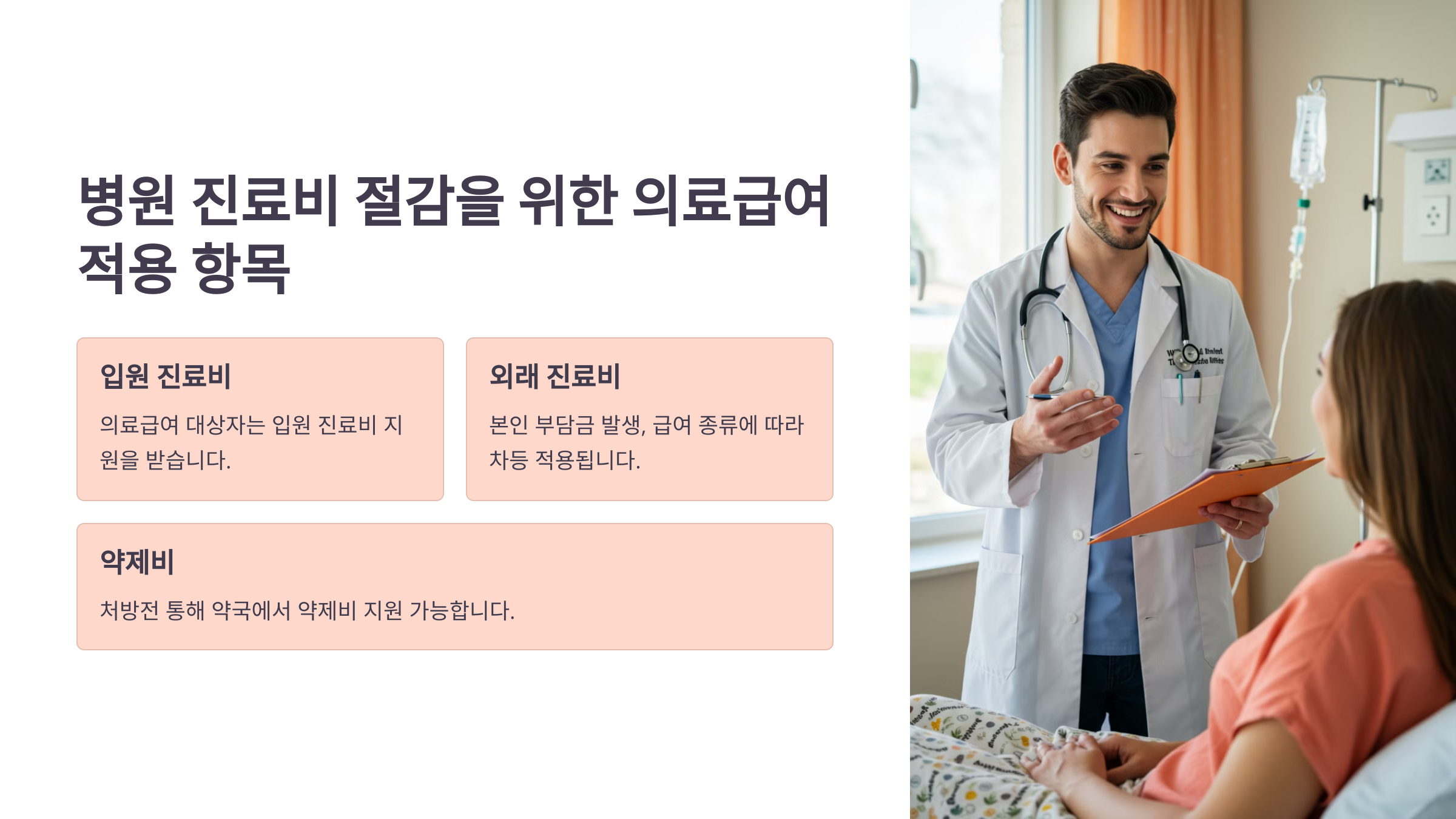 의료급여는 입원비, 외래 진료비, 약제비 등 다양한 의료비를 지원해요. 다만, 1종과 2종에 따라 본인 부담금이 다르니 꼭 확인하세요! ✅