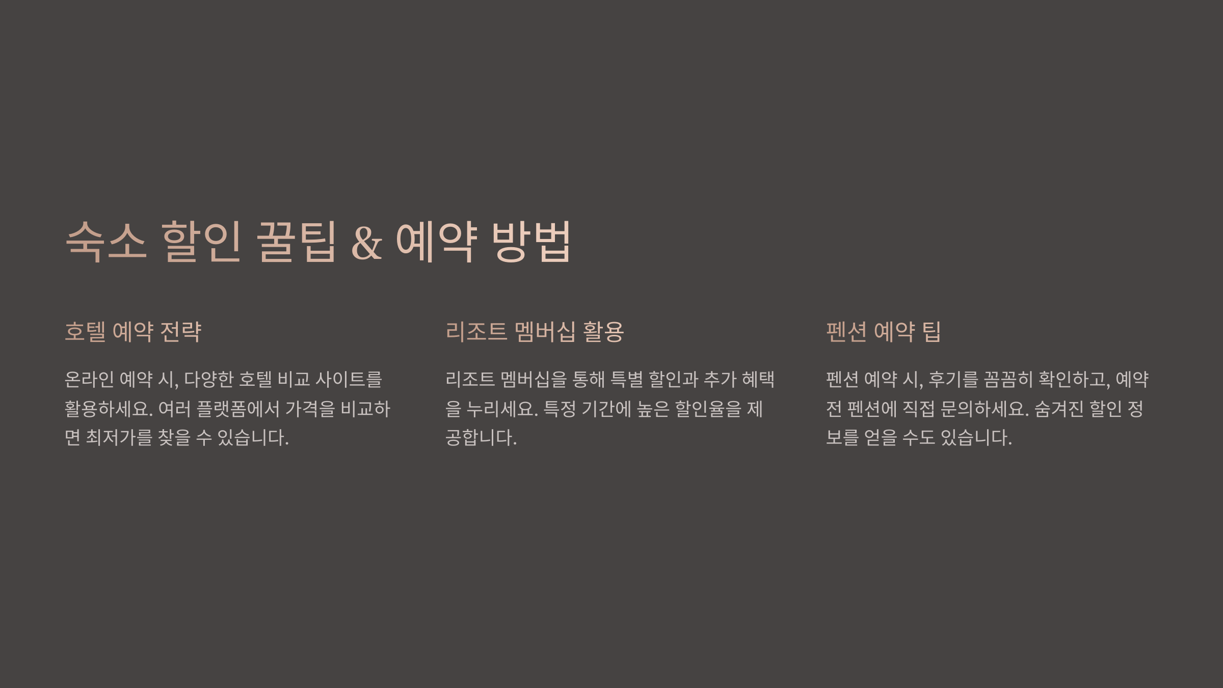 - 💳 카드사별 숙박 할인 프로모션 활용 (예: 삼성카드, 국민카드)
