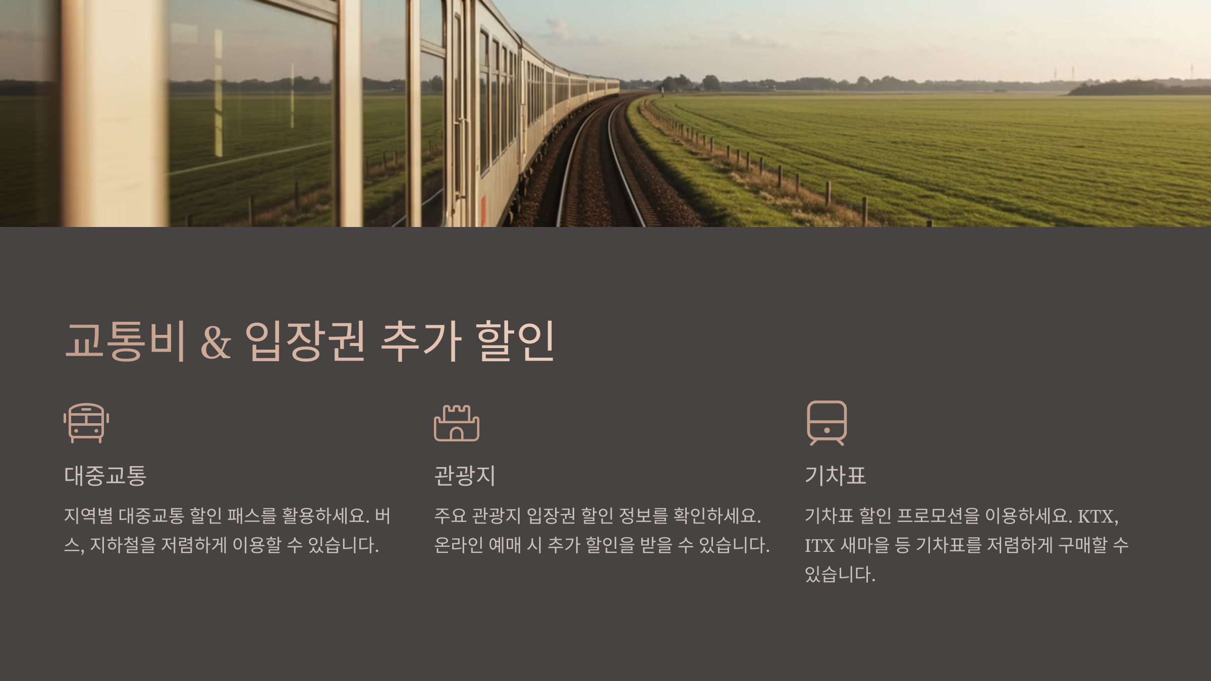 🚆 교통비·관광지 입장권까지! 추가 할인 혜택 활용법