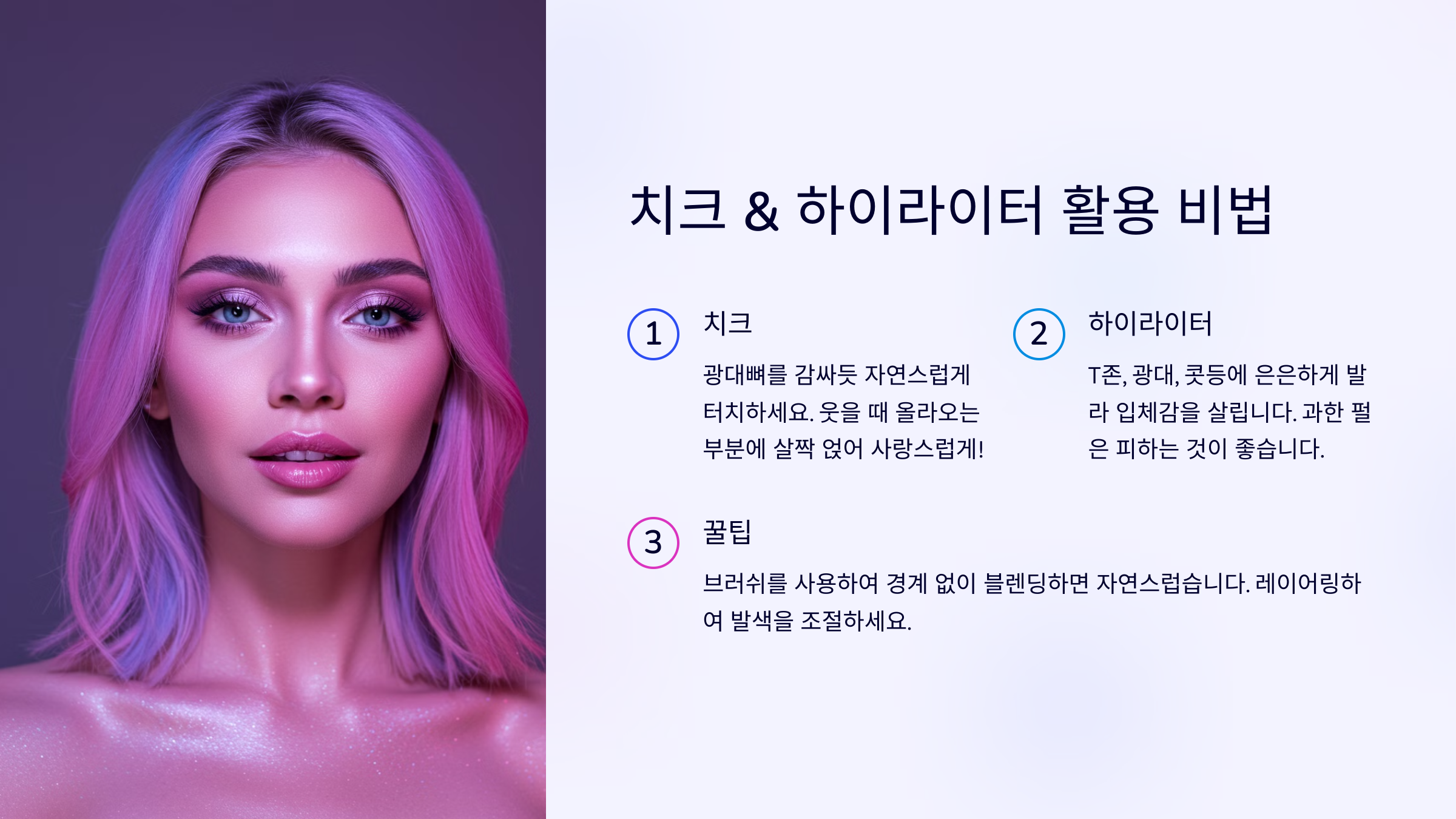 💡 아래에서 치크 & 하이라이터 활용법을 확인하고, 분위기 있는 메이크업을 완성해 보세요! ✅