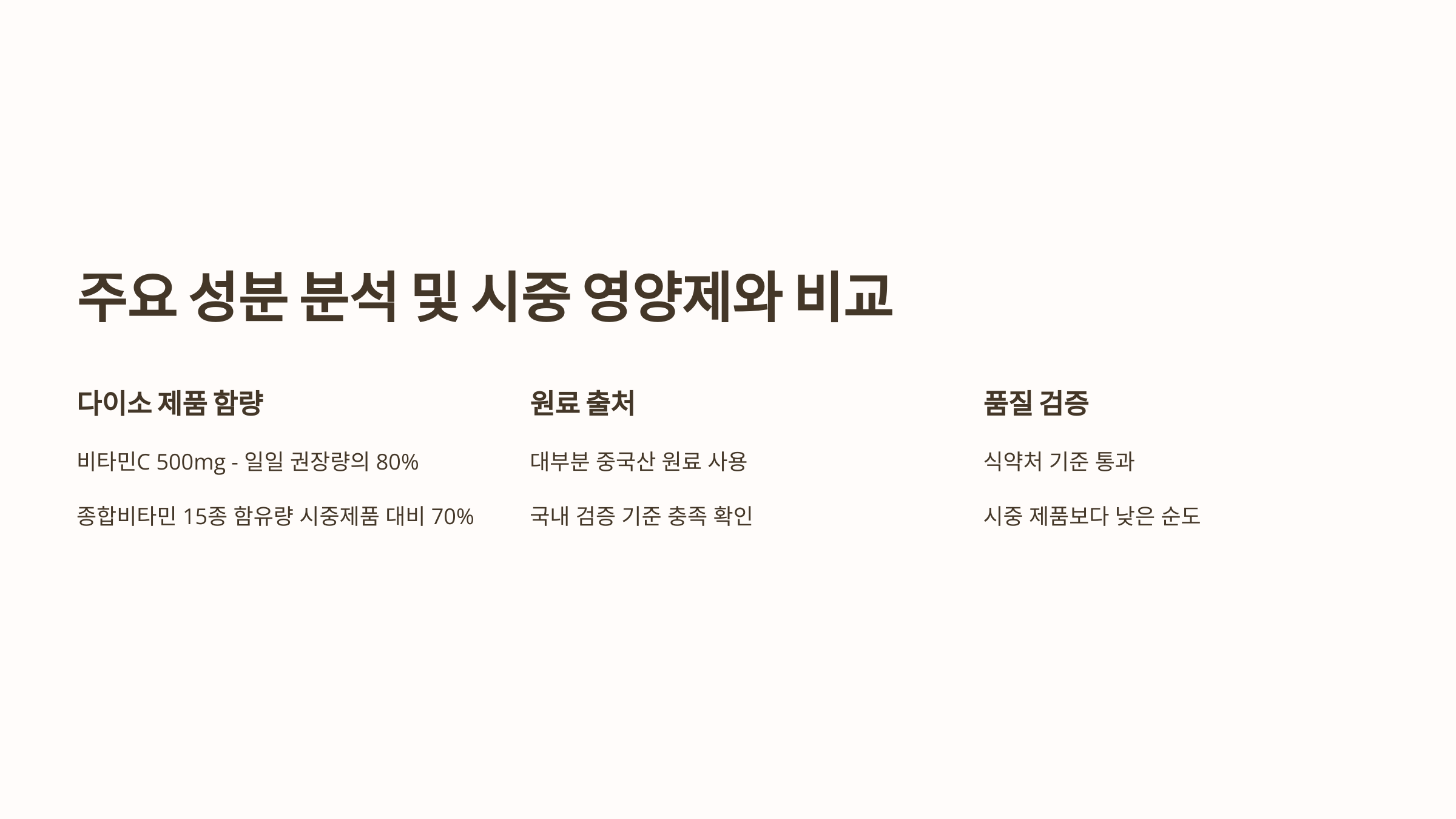 그렇다면 다이소 영양제의 주요 성분을 시중 제품과 비교해볼까요? 📋