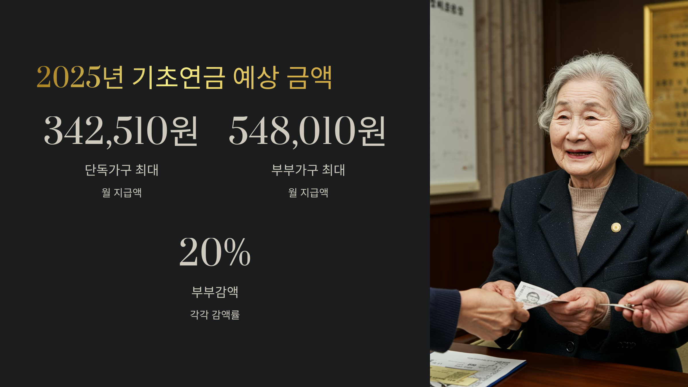 💡 TIP! 기초연금은 부부가 함께 받을 경우 1인당 금액이 다소 줄어들지만, 소득·재산 수준에 따라 감액 기준이 달라지므로 정확한 계산이 필요해요! 📊