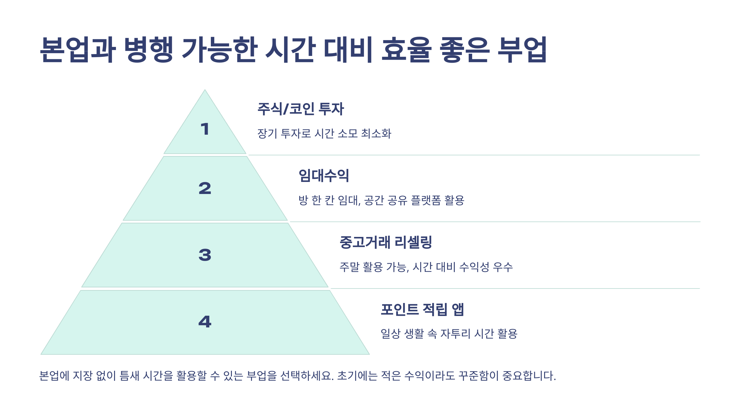 바쁜 직장인도 부담 없이 시작할 수 있는 시간 대비 수익이 좋은 부업을 정리해봤어요. 💼🔥