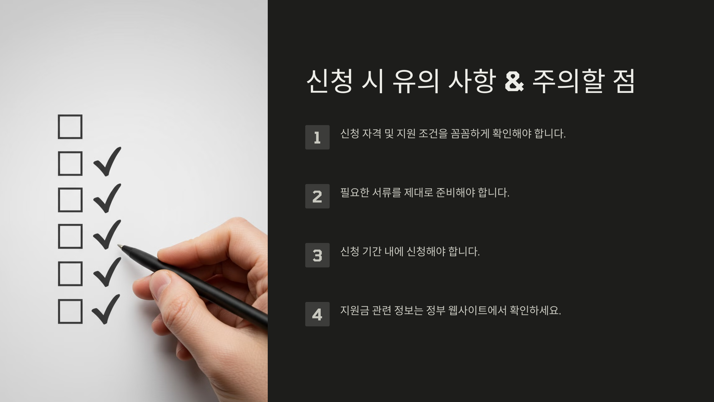 | 📅 신청 기한 엄수 | 정해진 신청 기간 내 접수하지 않으면 지급 불가 |