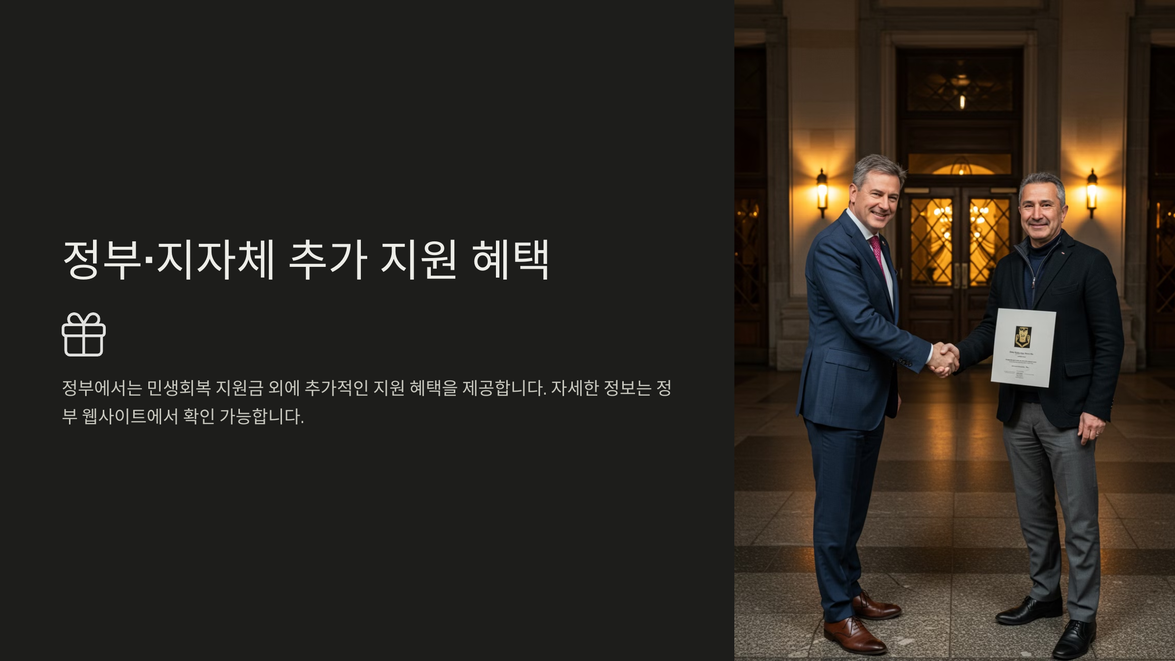 📢 민생회복 지원금 외에도 추가로 받을 수 있는 지원금이 있을까요? 다음 섹션에서 정부 & 지자체의 추가 혜택을 확인해 보세요! 💰
