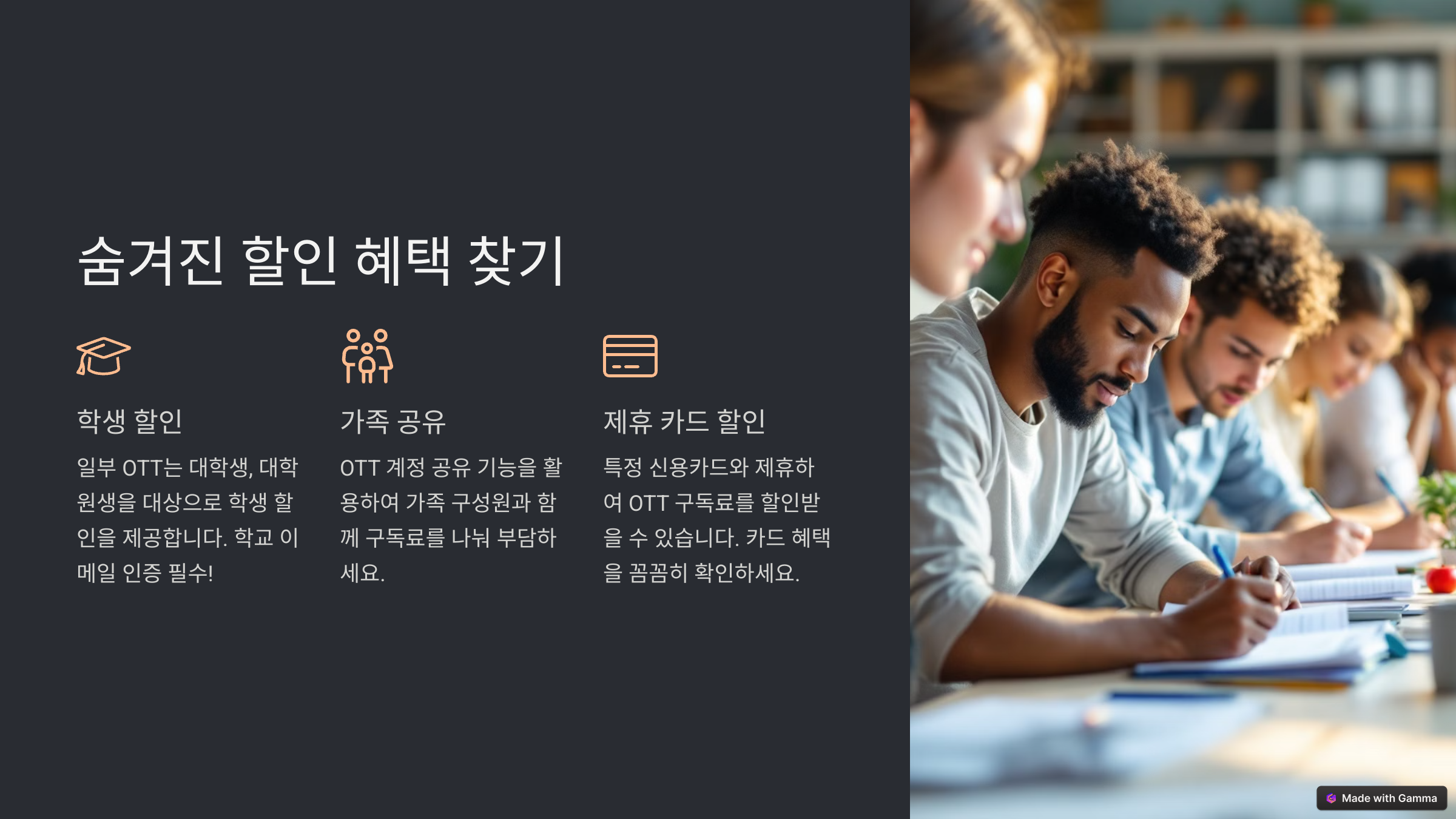 OTT 서비스에는 우리가 미처 몰랐던 다양한 할인 혜택이 숨어 있어요. 학생 할인, 가족 요금제, 통신사 제휴 할인 등을 활용하면 훨씬 저렴하게 OTT를 구독할 수 있어요.