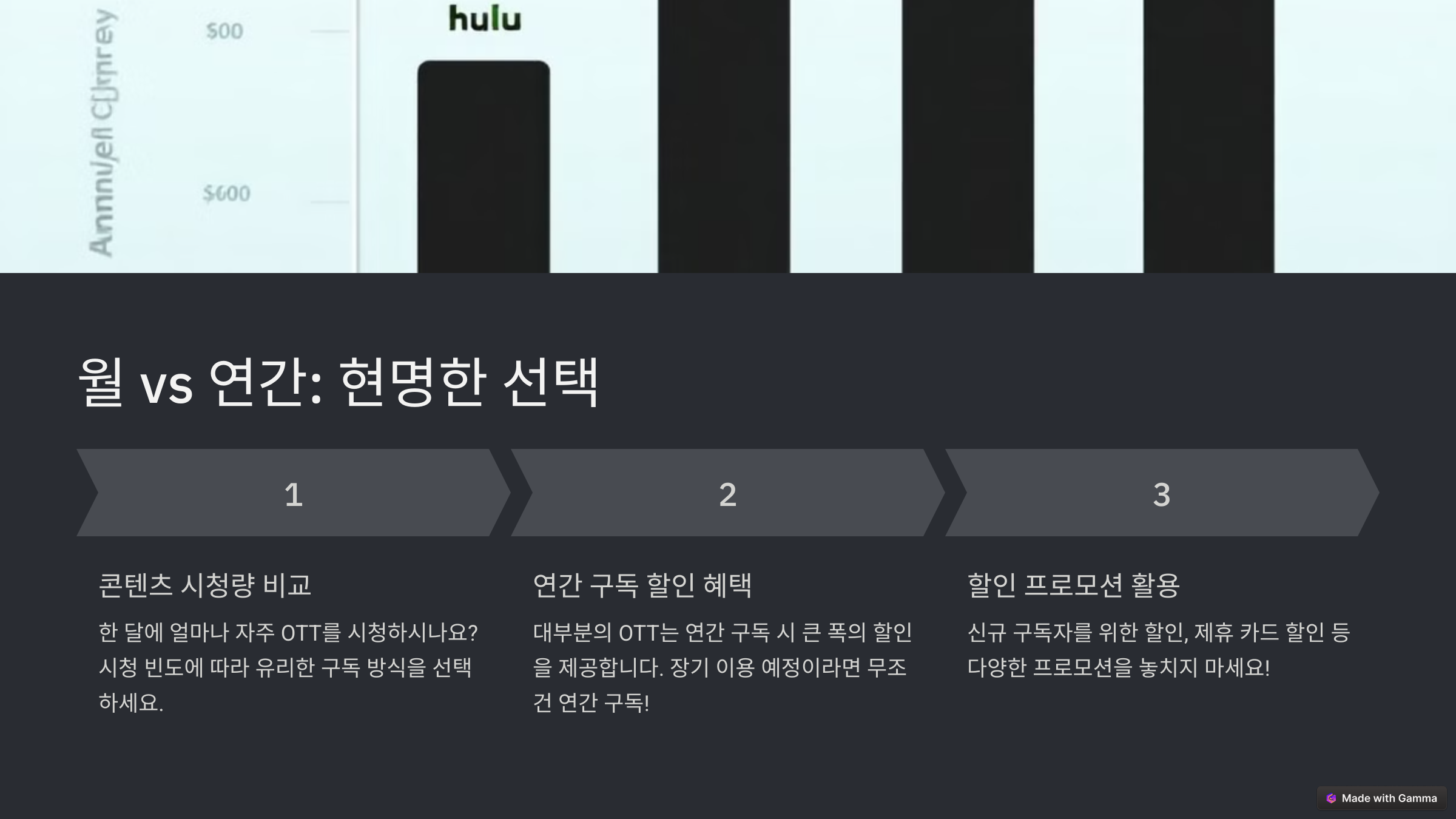 OTT 구독 패턴을 분석한 후, 장기적으로 사용할 플랫폼은 연간 구독을 선택하고, 시즌별로 특정 콘텐츠를 시청할 경우는 월간 구독을 이용하는 것이 가장 현명한 방법이에요! 📺