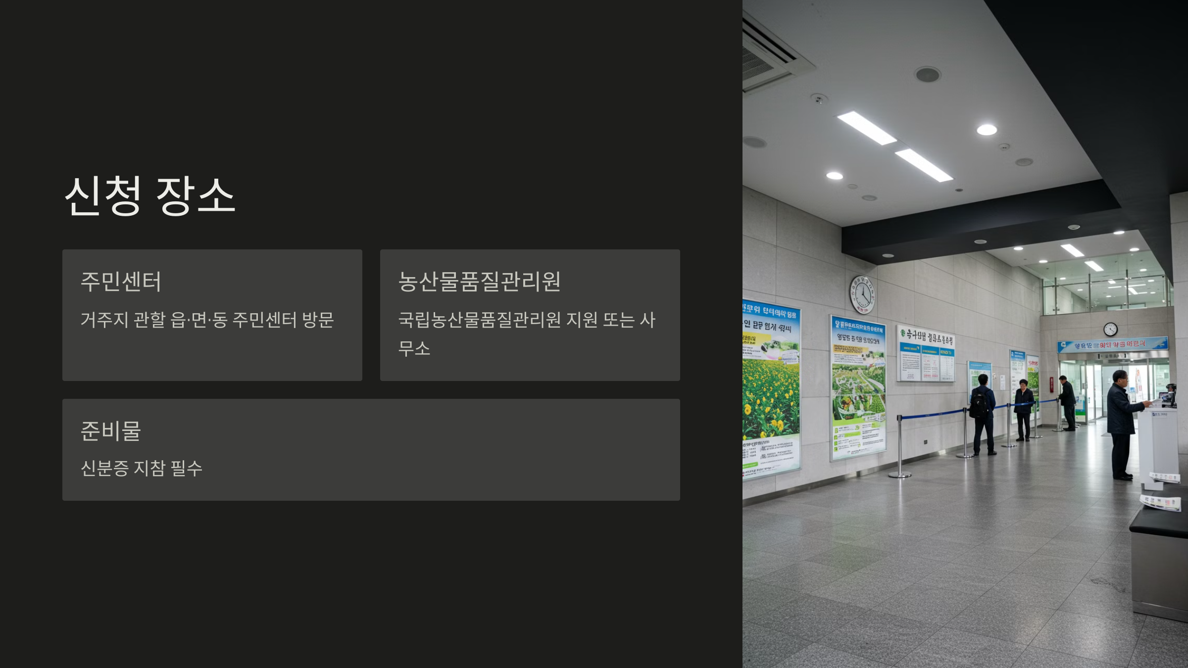 📍 신청 장소 – 주소지 관할 읍·면·동 주민센터 또는 국립농산물품질관리원