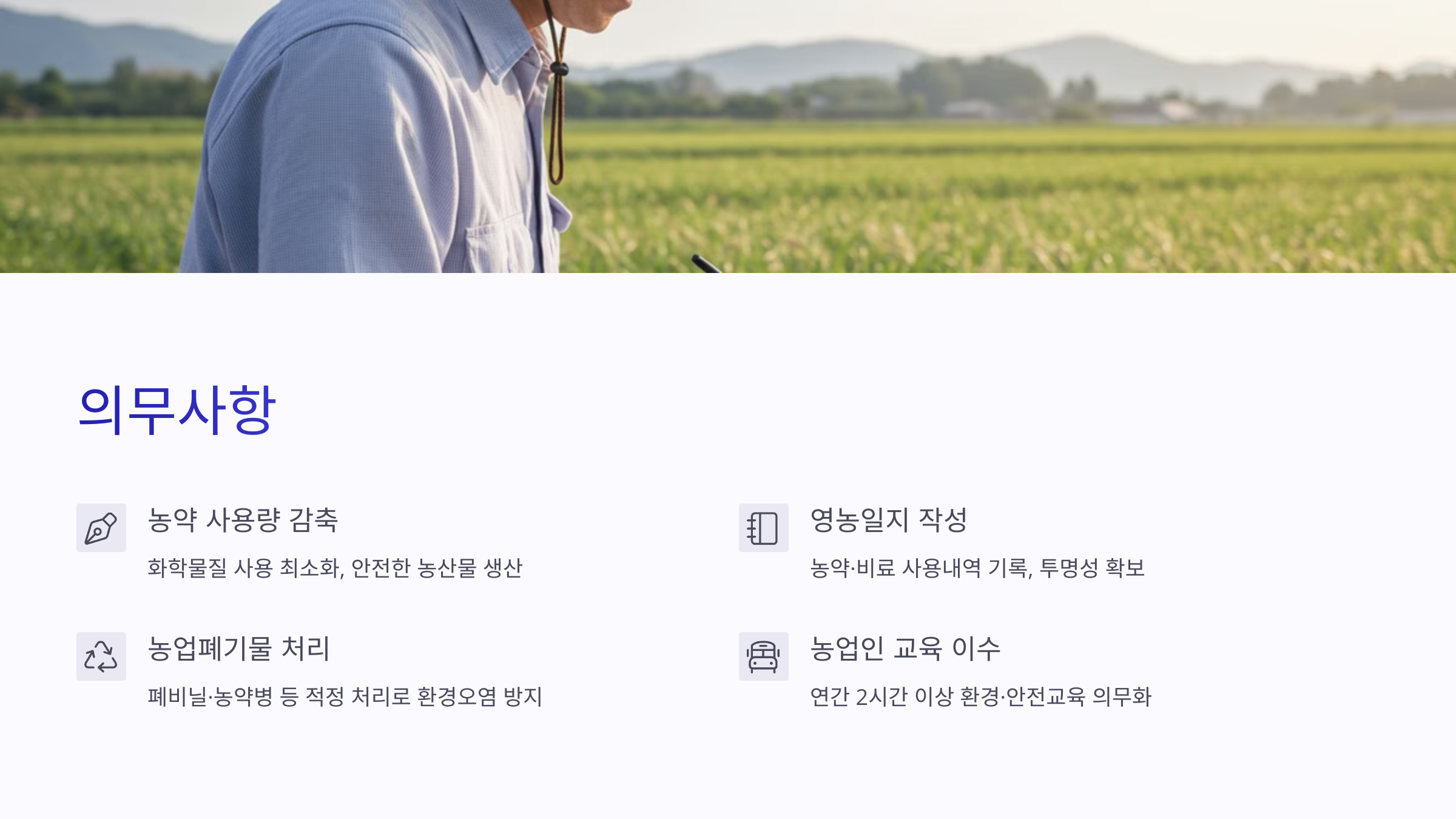 ⚖️ 의무사항 포함 – 농약사용 감축, 영농일지 작성 등