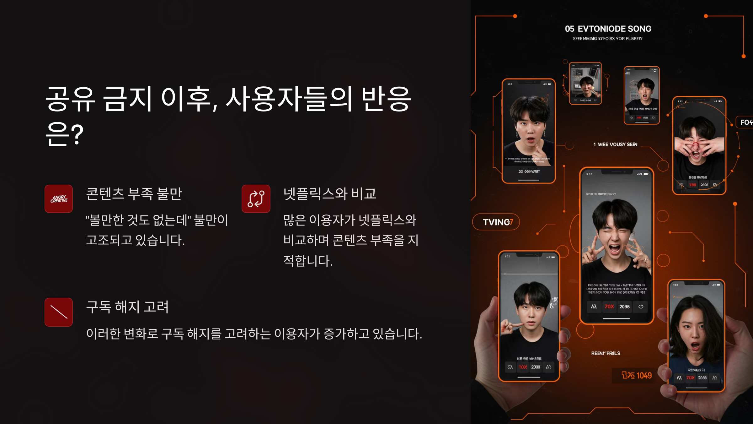이처럼 무작정 막기보다는 유연한 기준이 필요하다는 지적이 많은데요. 아직은 시행 초기라 티빙 측에서도 기준을 다듬고 피드백을 반영해가는 과정으로 보인다는 평가도 있어요.