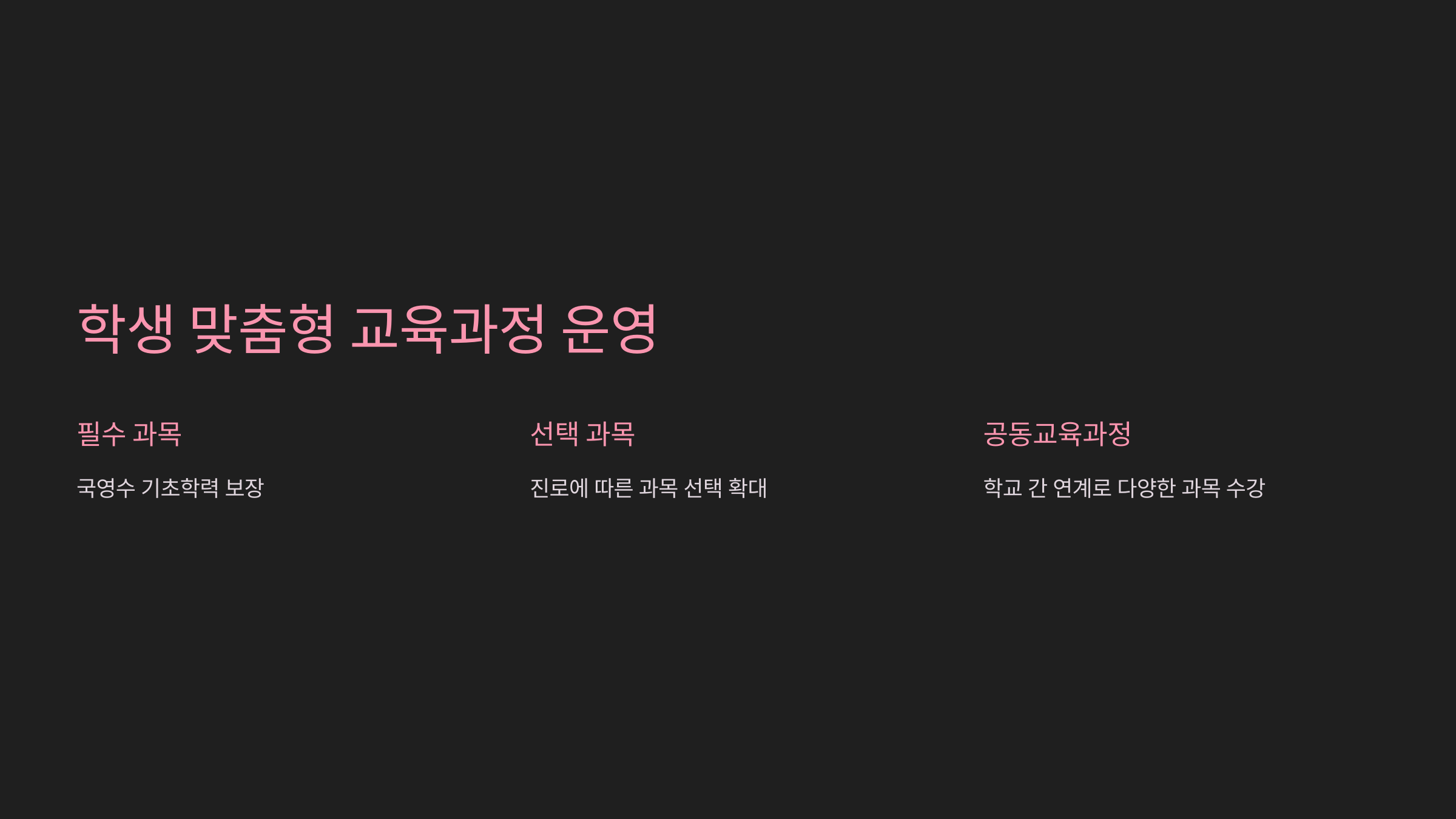| 과목 선택 | 정해진 교육과정 | 학생 맞춤형 선택 가능 |