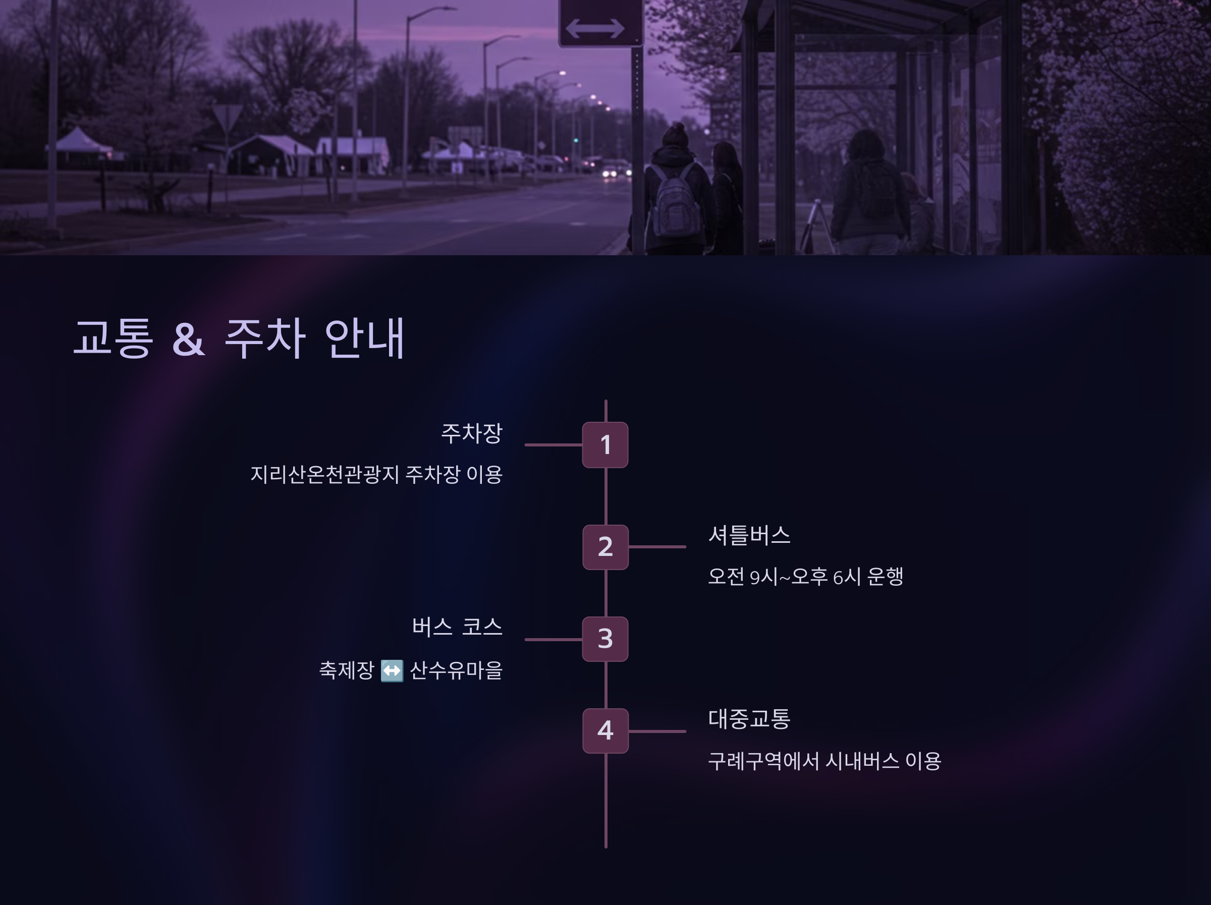 맛있는 음식까지 즐겼다면, 이제 축제장까지 가는 방법과 주차 정보를 확인해 볼까요? 🚗