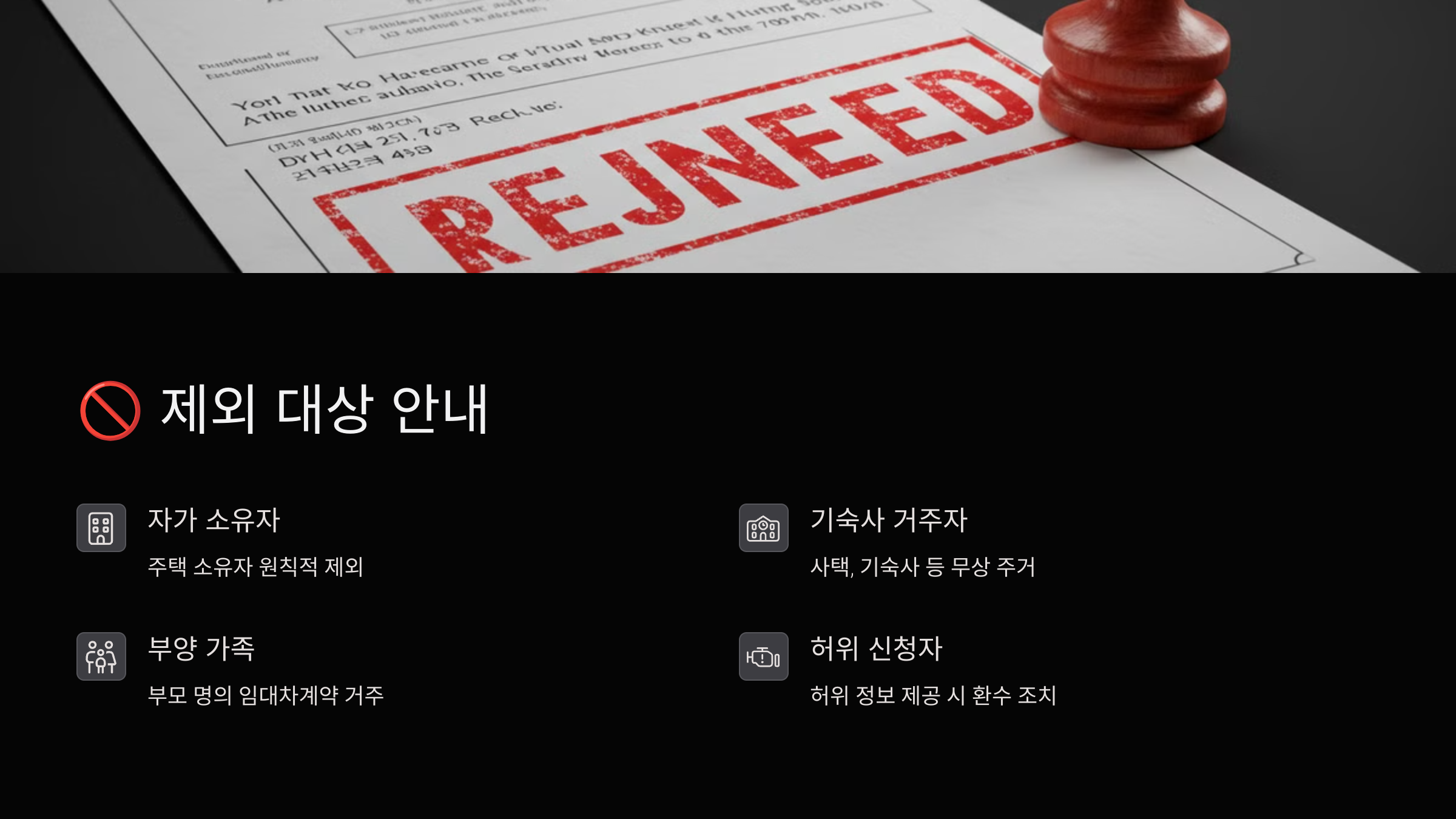 이제 마지막으로! 어떤 경우에 신청이 어려운지, 즉 제외 대상에 대해 알려드릴게요. 해당되면 자동 탈락될 수 있으니 꼭 체크해보세요!