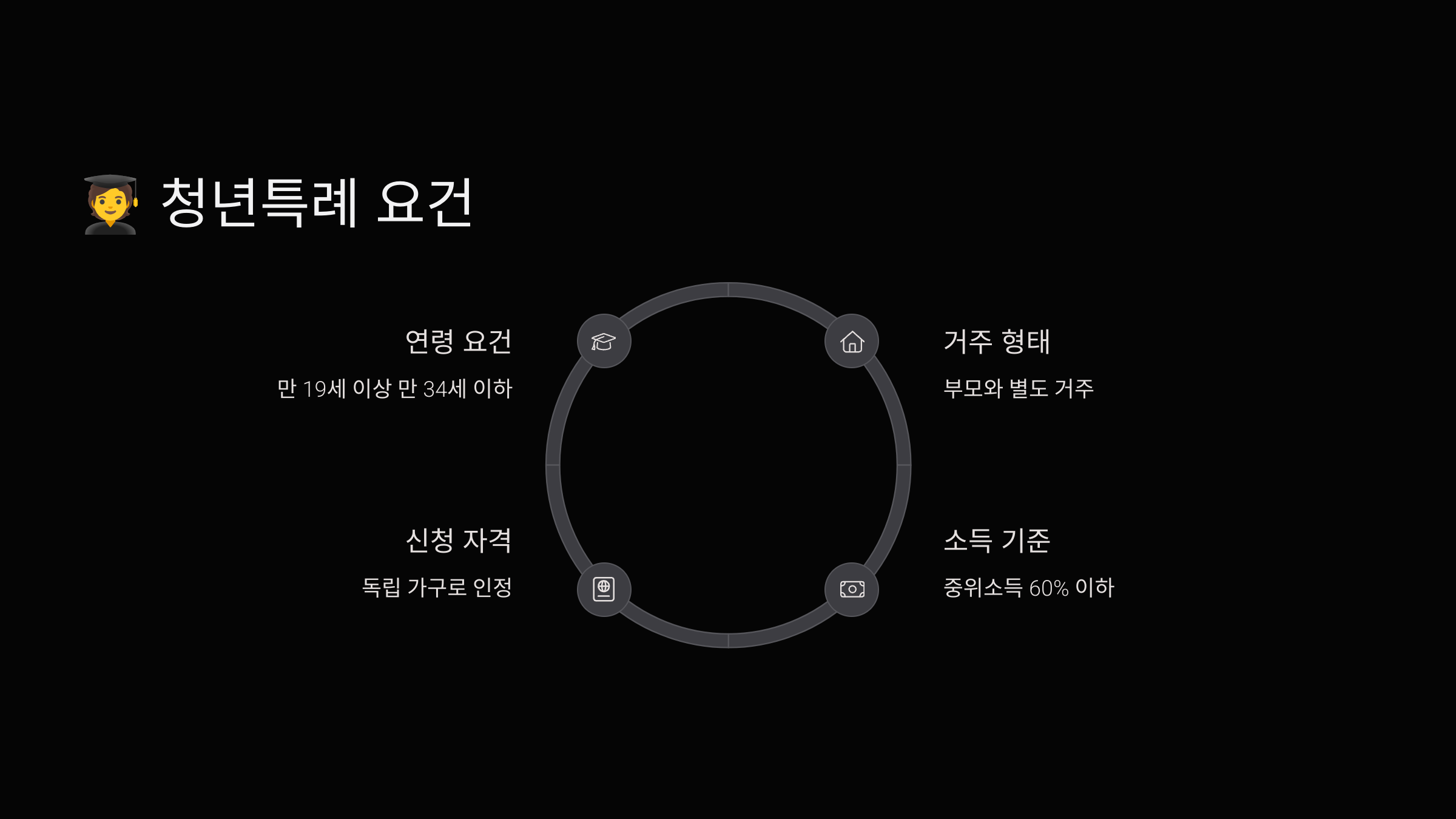 다음은 많은 청년들에게 희소식인 청년특례 자격요건이에요. 기준이 조금 더 널널하니, 꼭 확인해보세요!