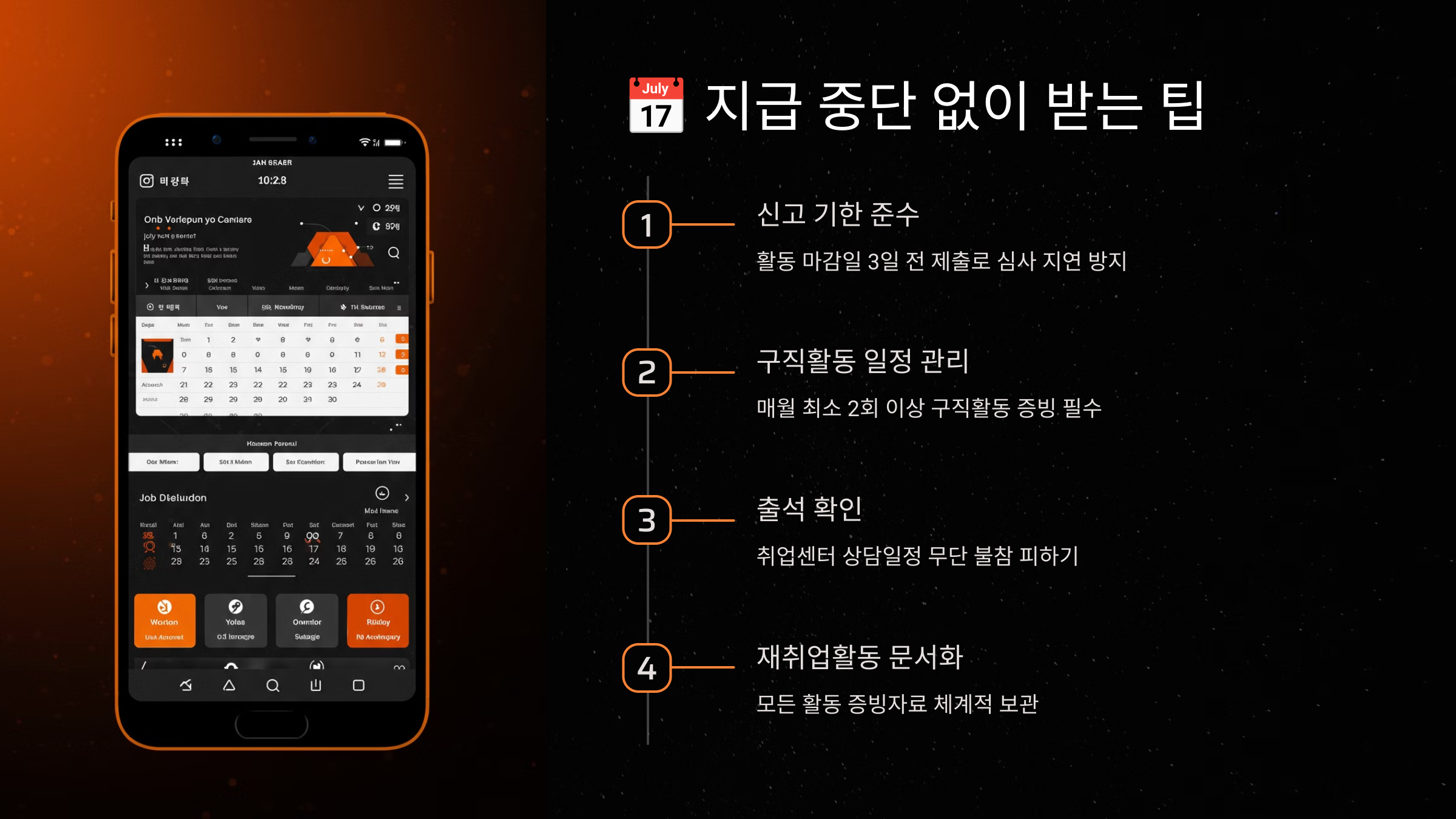 두 번째는 구직활동 결과 보고</strong예요. 내가 한 활동(이력서 제출, 면접 참여 등)을 매월 말까지 온라인이나 고용센터에 보고해야 해요. 이게 확인돼야 다음 달 수당이 지급돼요. 증빙 자료가 부족하거나 누락되면 지급 보류 또는 감액될 수 있어요.