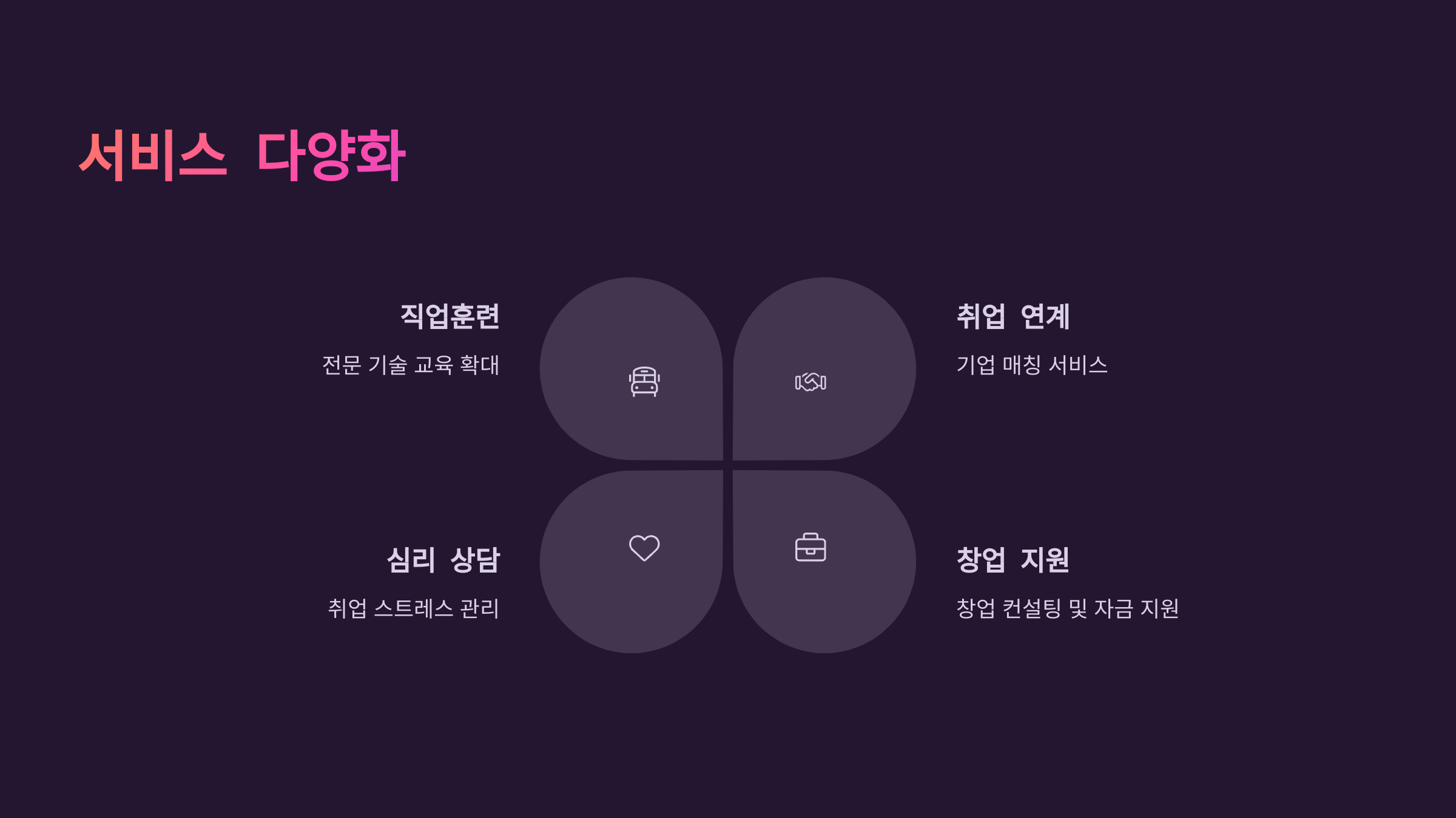 🚀 훈련 중심 → 서비스 다양화 – 심리상담·창업 컨설팅 포함