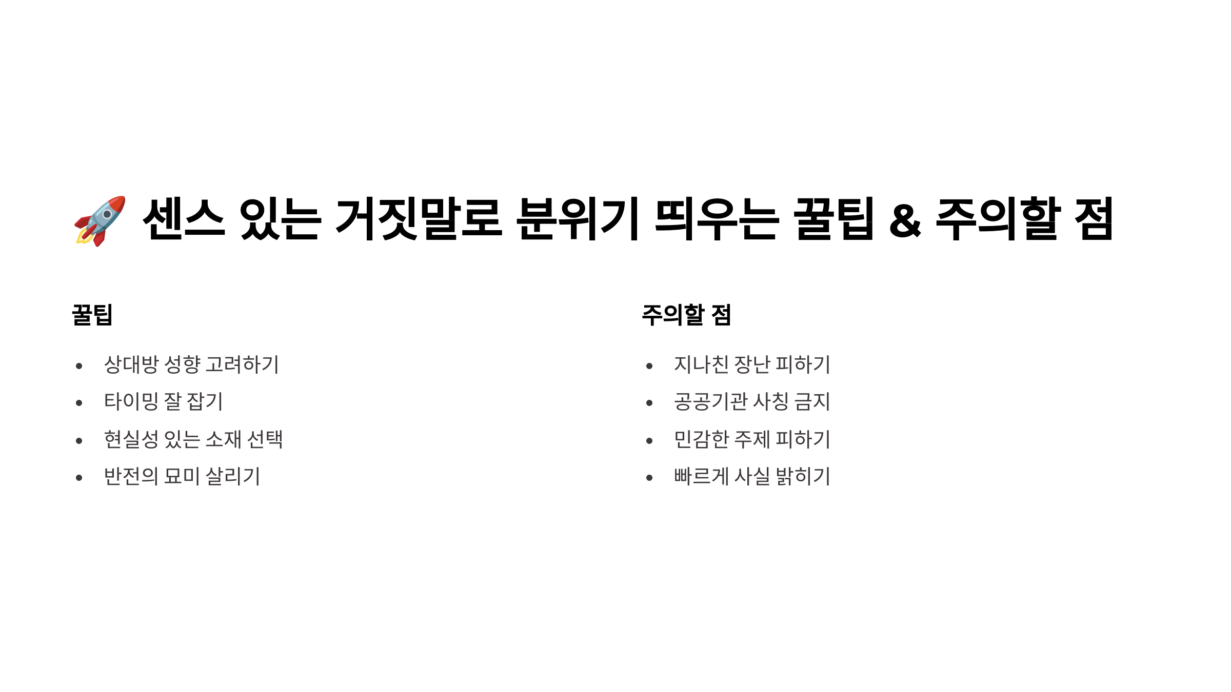 🚀 센스 있는 거짓말로 분위기 띄우는 꿀팁 & 주의할 점