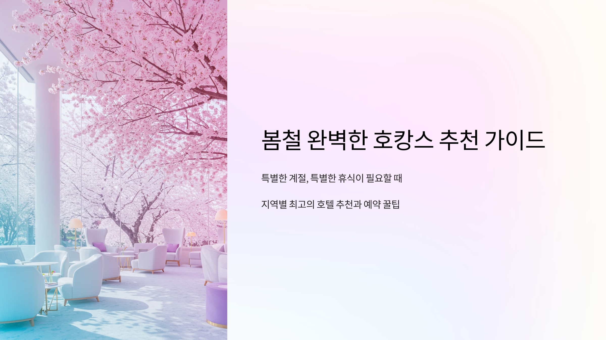 🌸 따뜻한 봄바람과 함께 즐기는 호캉스! 이번 봄, 분위기 좋은 호텔에서 여유로운 시간을 보내고 싶다면 꼭 확인해야 할 추천 리스트예요. 🏨✨