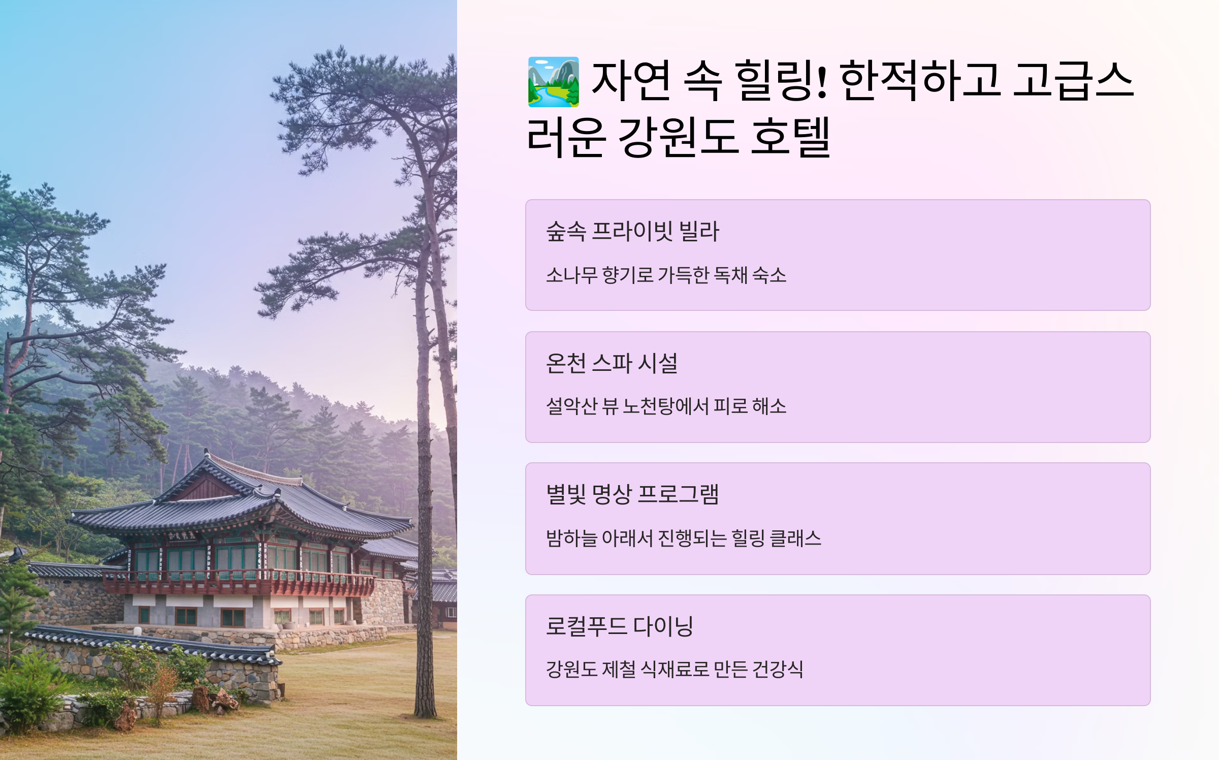 📌 강원도에서 자연과 함께하는 힐링 호텔 BEST 3
