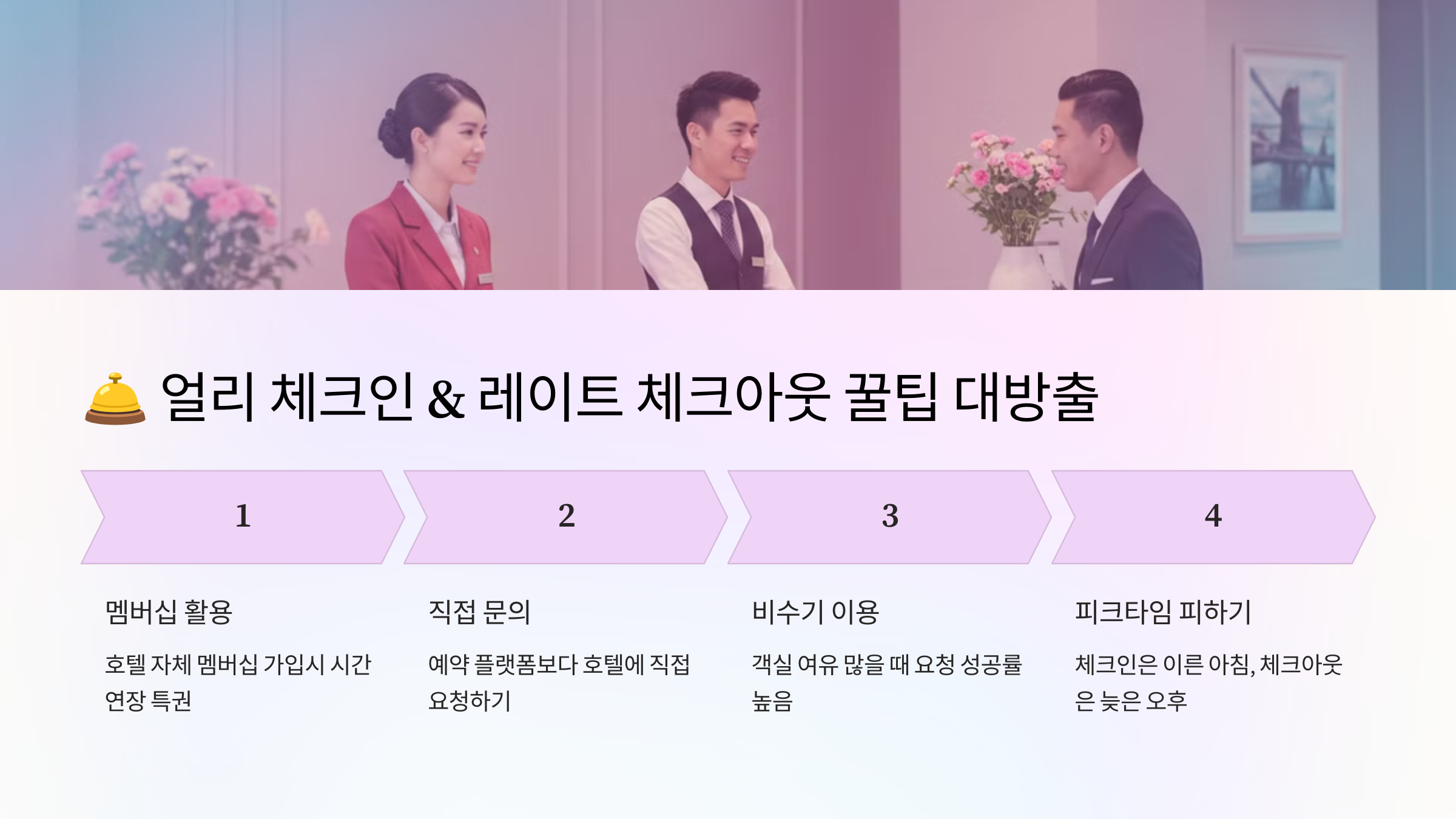🛎️ 얼리 체크인 & 레이트 체크아웃 꿀팁 대방출