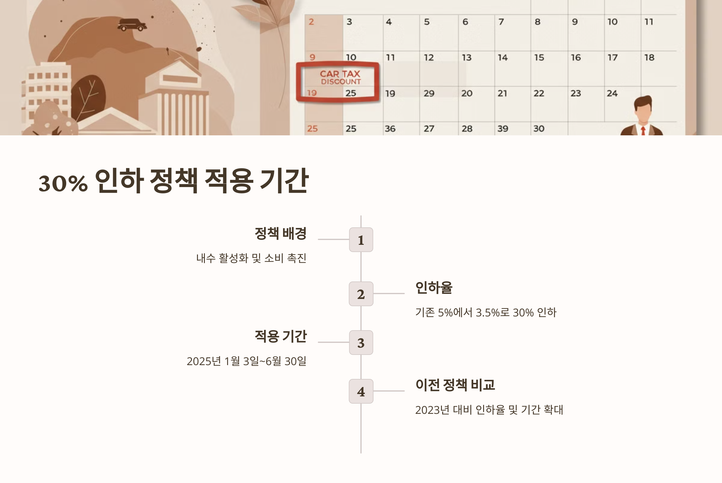 자동차 개별소비세 30% 인하 혜택은 한시적으로 시행돼요! 따라서 자동차를 구매할 계획이라면, 적용 기간을 꼭 확인해야 해요. 🚗📆