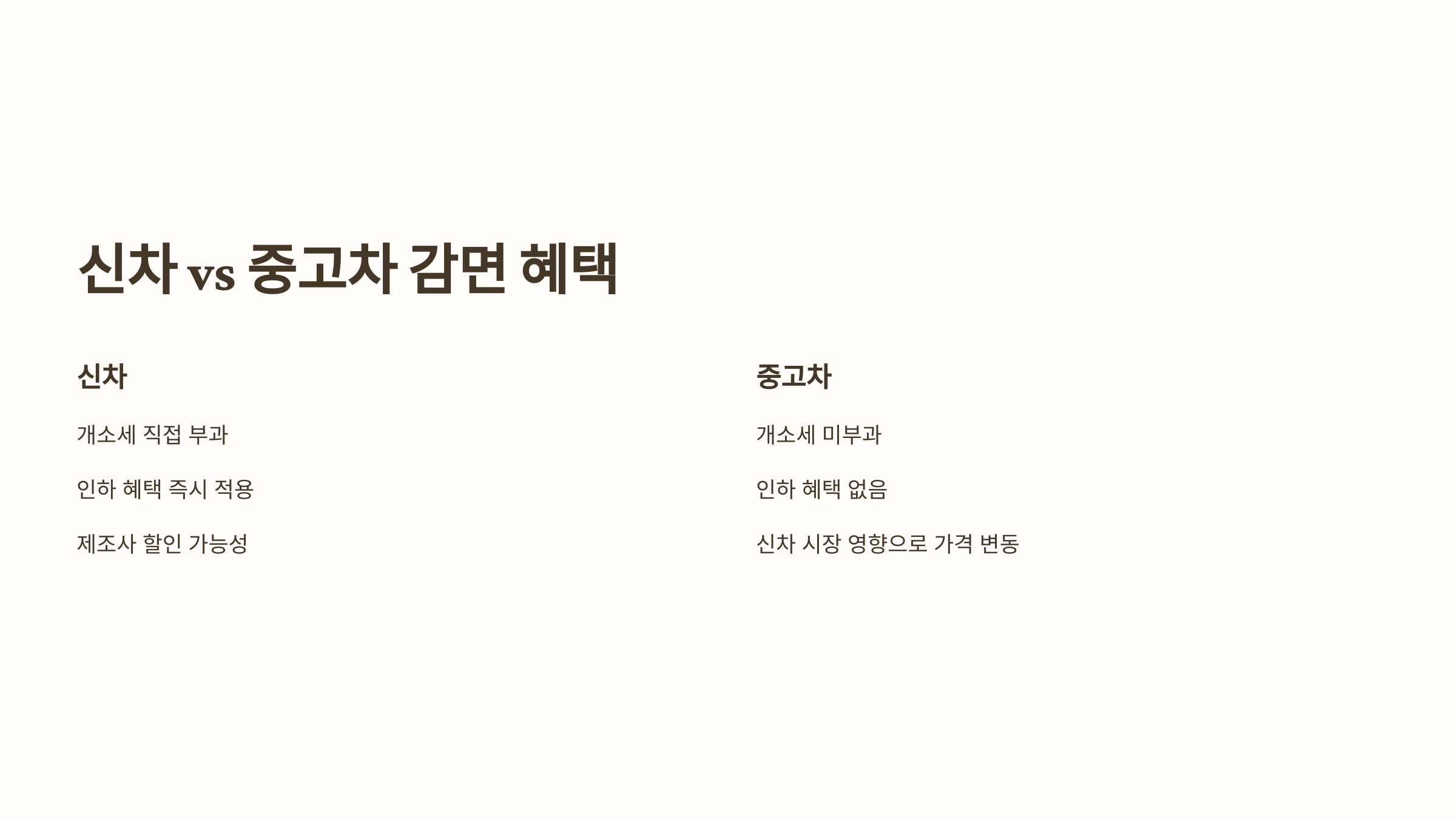 🔍 신차 vs 중고차, 감면 혜택 적용 가능 여부