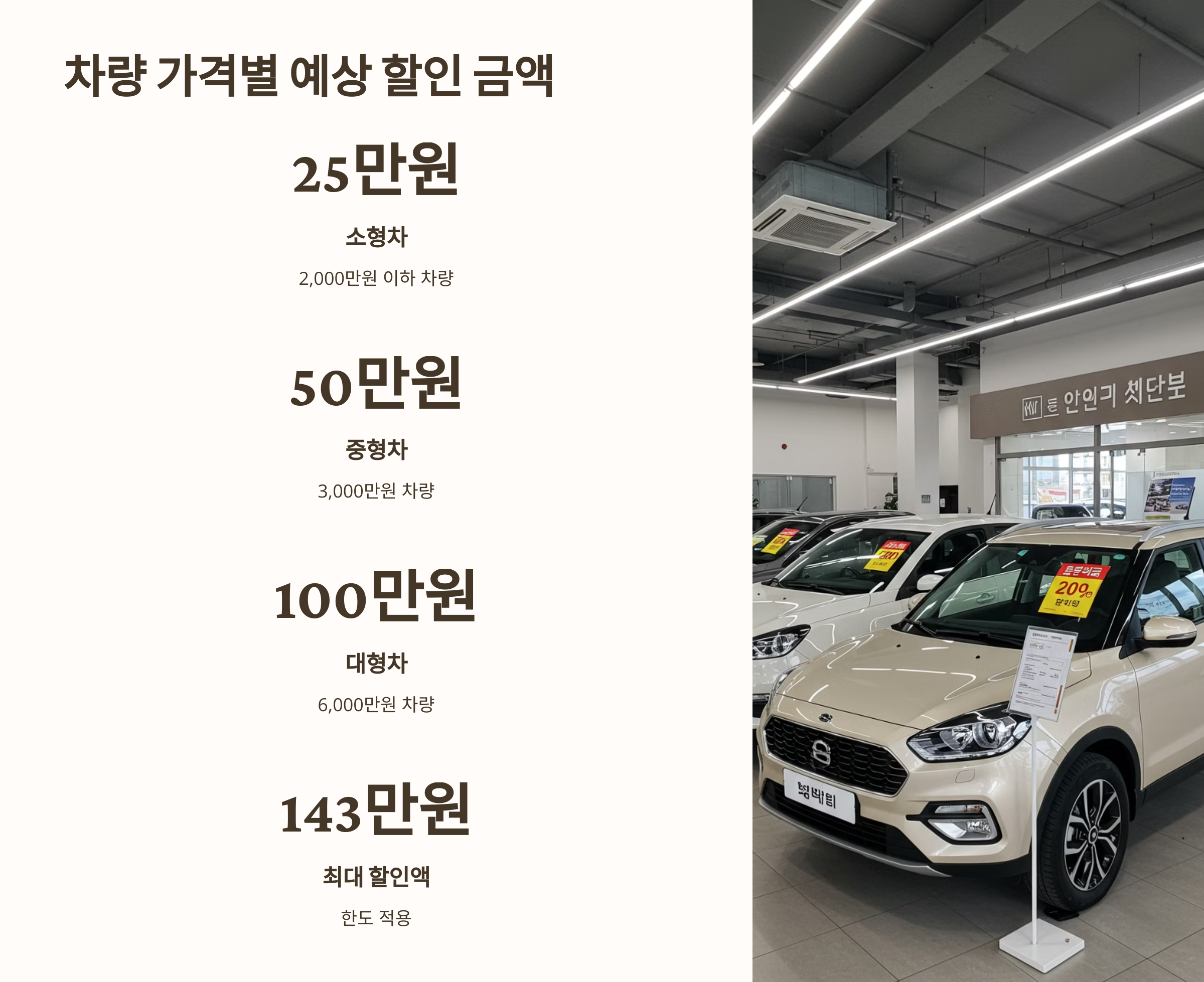 📌 고가 차량일수록 할인 금액이 커지기 때문에, 고급 세단이나 SUV 구매를 고려 중이라면 이번 기회를 잘 활용하는 것이 좋아요! 🚗✨
