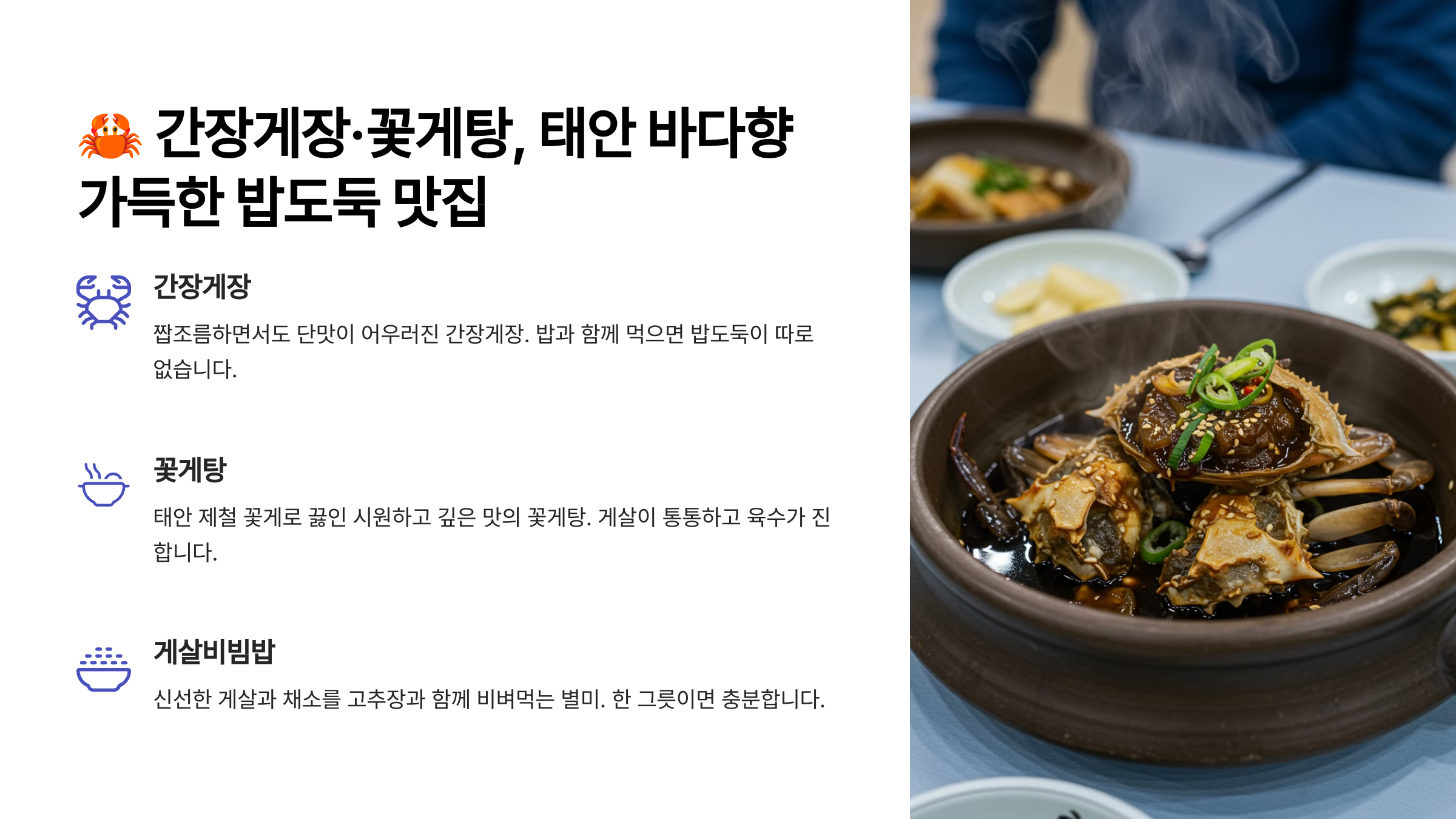 🦀 간장게장·꽃게탕, 태안 바다향 가득한 밥도둑 맛집