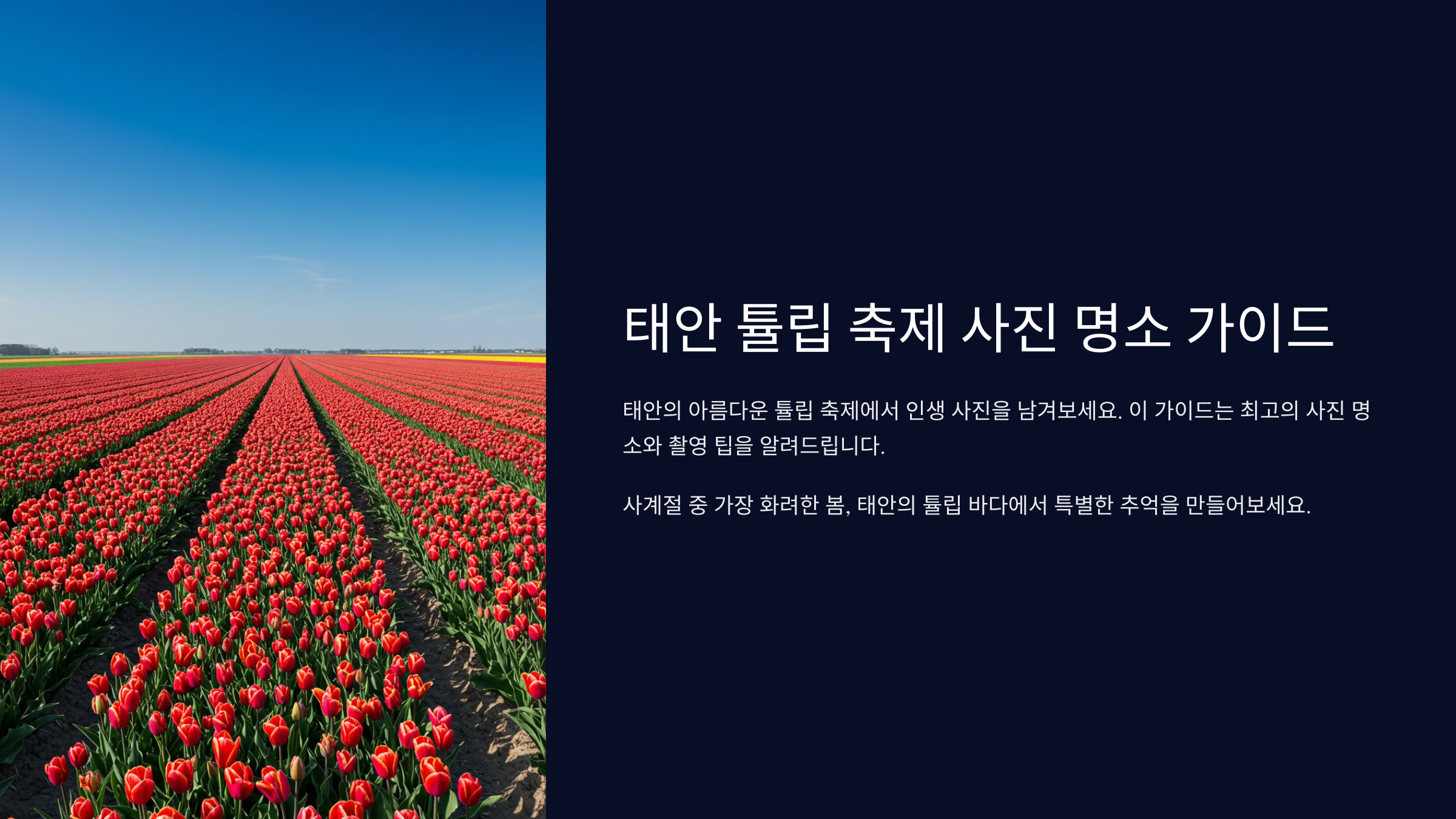 태안 세계튤립축제에 다녀왔다는 건, 결국 ‘사진 맛집’ 다녀왔다는 뜻이죠! 끝없는 꽃밭 사이, 컬러감 폭발하는 정원 안에서 인생샷 하나쯤은 꼭 남기고 와야 후회가 없어요. 오늘은 사진 찍기 좋아하는 분들을 위해 포토존 BEST 6 + 꿀팁 + 실전 FAQ까지 총정리해볼게요.