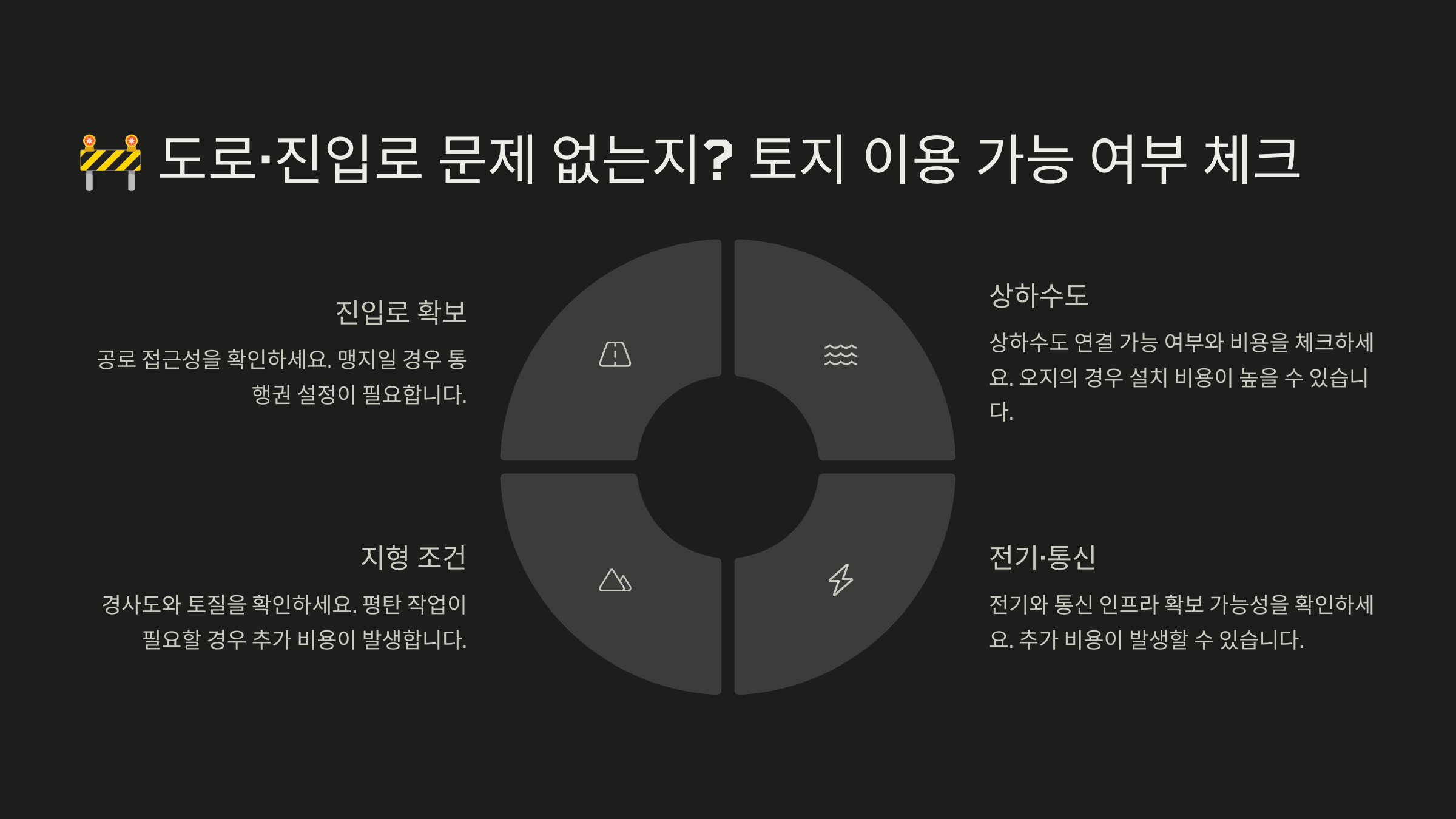 🚧 도로·진입로 문제 없는지? 토지 이용 가능 여부 체크