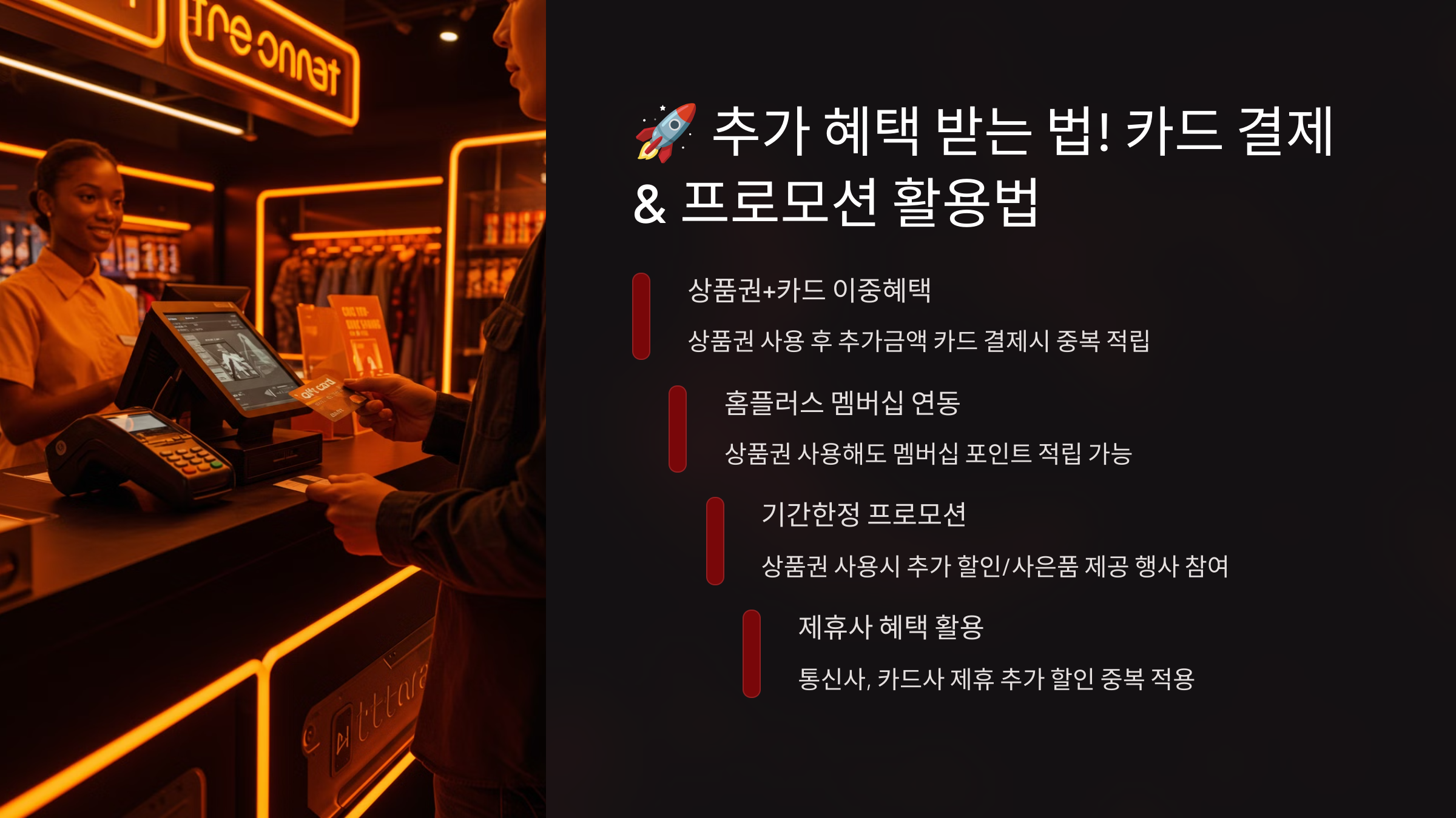 ✔ 홈플러스 자체 프로모션 → 상품권 사용 시 1+1 행사 또는 추가 적립 제공