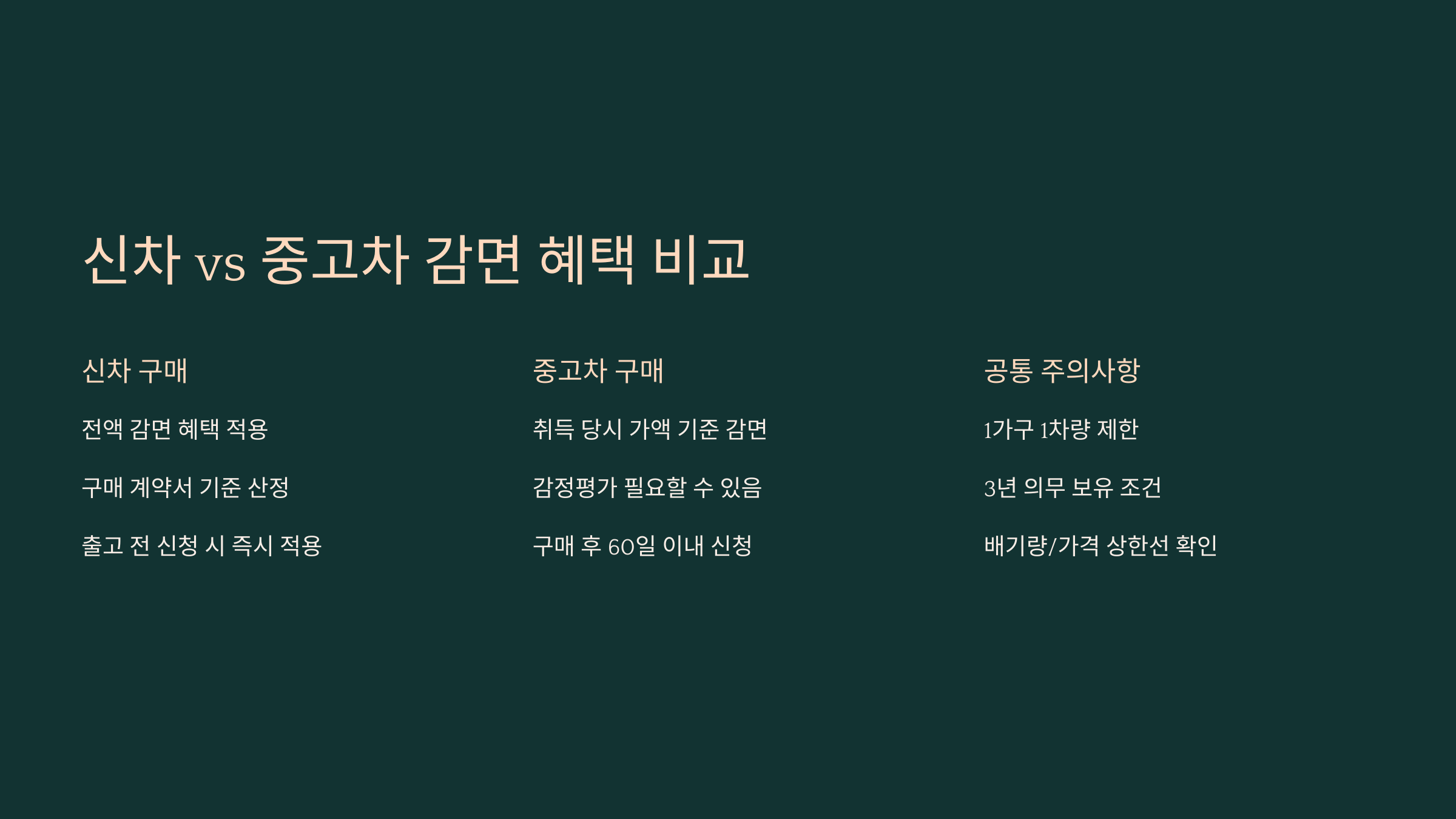 🚀 신차 vs 중고차, 감면 혜택 적용 범위 차이점