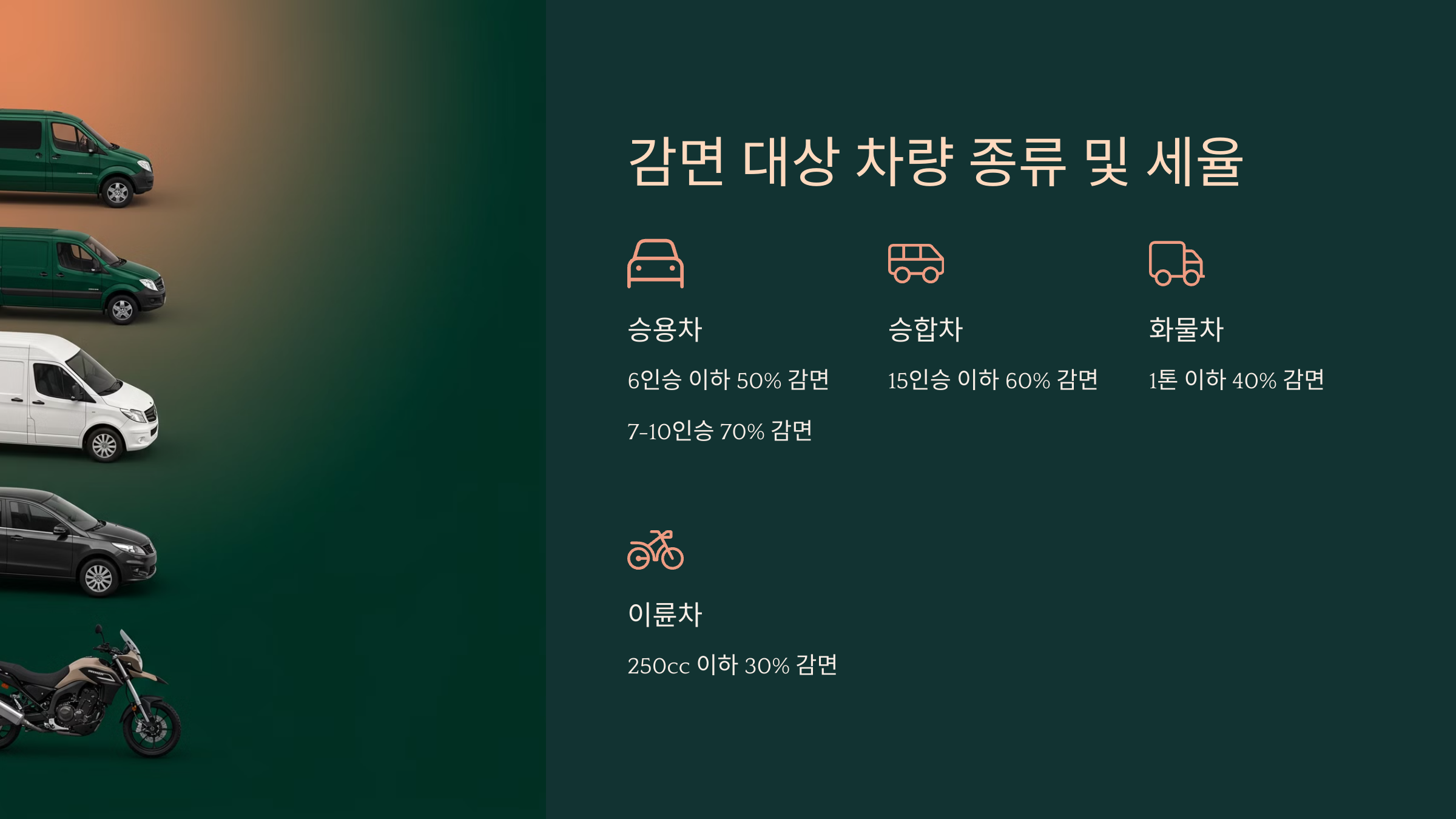 ✔️ 단, 감면 대상 차량(7~10인승 승용차 등)만 적용