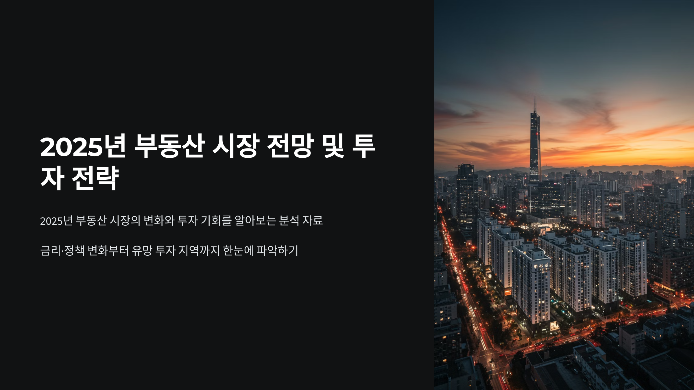 2025년 부동산 시장은 어떤 변화를 맞이할까요? 📈 금리, 정책 변화, 개발 계획 등 다양한 요소가 시장 흐름을 결정할 거예요.